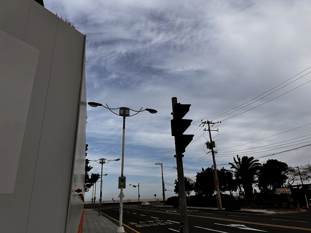 우연히 바다 너머 차도 위를 나는 갈매기를 보았습니다.