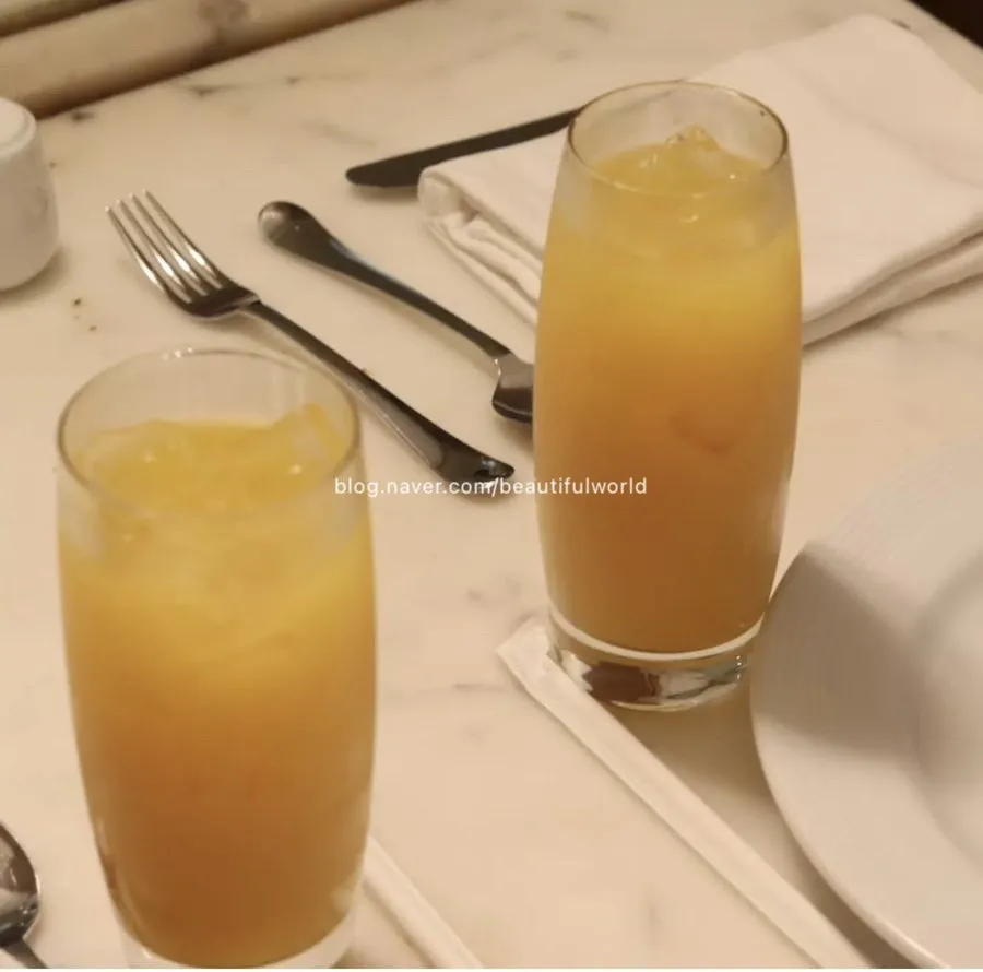 직원은 그레이스와 내가 자리에 앉자 여러 종류의 음료를 제시하며 어떤 것을 마실지 물었다 나는 국내 뷔페를 이용할 때처럼 음료비는 무료라 생각해 오렌지 주스를 주문했다 하지만 음식을 뜨러 갔을 때 또 다른 음료들이 마련된 것을 보며 ‘어?! 이건 또 뭘까?‘라는 마음이 들었다 이후 식당을 나가며 후불로 음식 값을 치를 때 보니 음료비는 따로 받더라 그래서 나중에 다시 찾았을 때는 음료 주문은 하지 않고 기본으로 제공하는 음료수만 마셨다