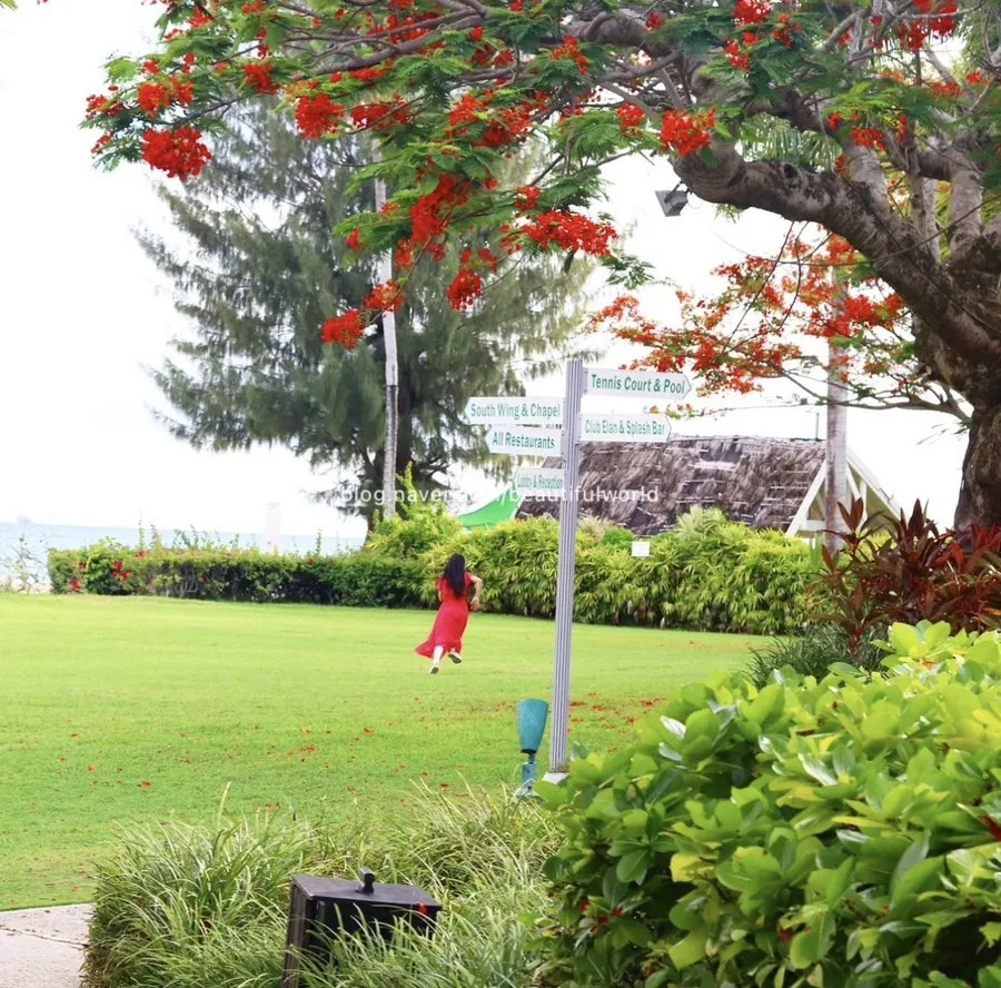 브런치 시작 시간보다 일찍 도착했던 터라 호텔 정원을 돌아보았다 잘 정돈된 나무와 열대의 화려한 꽃들이 숙소의 고급스러움을 더했다