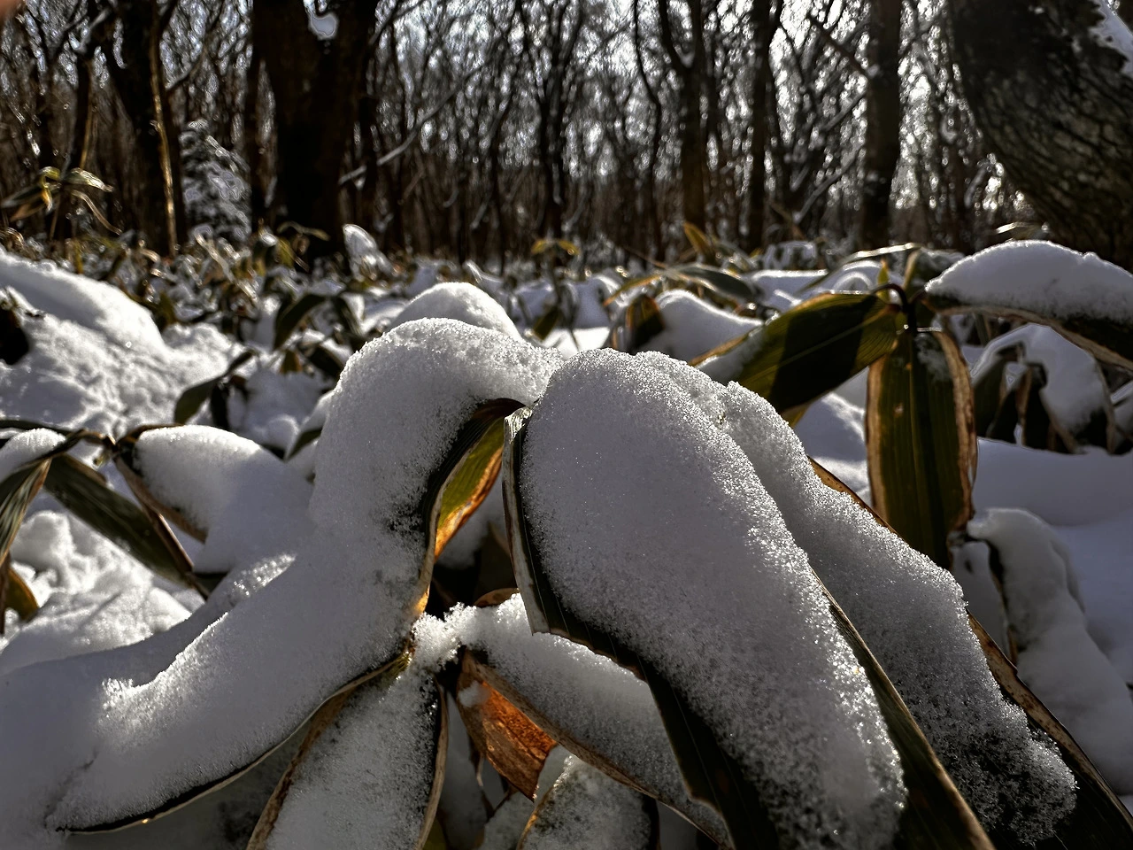 에필로그) 아이와 같이 눈놀이를 하러 갔던 한라산 어리목 입구예요 조릿대는 한라산 식생에 악영향을 끼친다고 천덕꾸러기 취급을 받지만, 이 날만큼은 잎새 위에 쌓인 눈을 통해 볼록볼록 튀어나온 모습이 어딘가 재미있네요