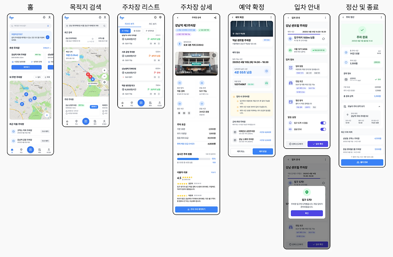 이런 방식으로 홈 화면부터 목적지 검색, 주차장 상세, 예약/입차/정산 화면까지 쭉 생성 및 수정보완을 진행했습니다.
