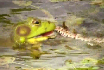 곰곰이 생각해 보면 뱀도 참 불쌍하다. 인간과 뱀은 원죄의 신화 때문인지 인간과 앙숙이지만 지금 우리는 뱀에게도 측은함과 동정심을 가지고 대하게 되었다. 제 딴은 개구리를 영원한 자기네들의 먹이라고 여겼을 텐데 오히려 먹히기도 하는 꼴이 되었다. 두 눈을 끔벅거리며 덤비는 황소개구리를 보고 슬금슬금 피해야만 하는 뱀의 신세, 알쏭달쏭하지만 인간이 개구리로부터 뱀을 보호해야 할 상황이 올지도 모르겠다.