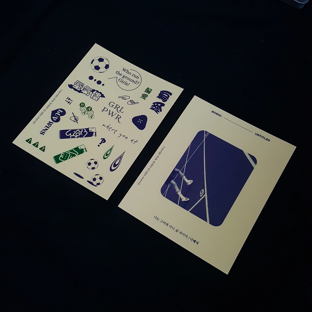 이번 9호 굿즈는 <WHO RUN THE GROUND? GIRLS!> 엽서입니다. 여성 축구팀 FC우먼스플레잉에 참여하며 찍은 사진들로 엽서를 만들었어요.
