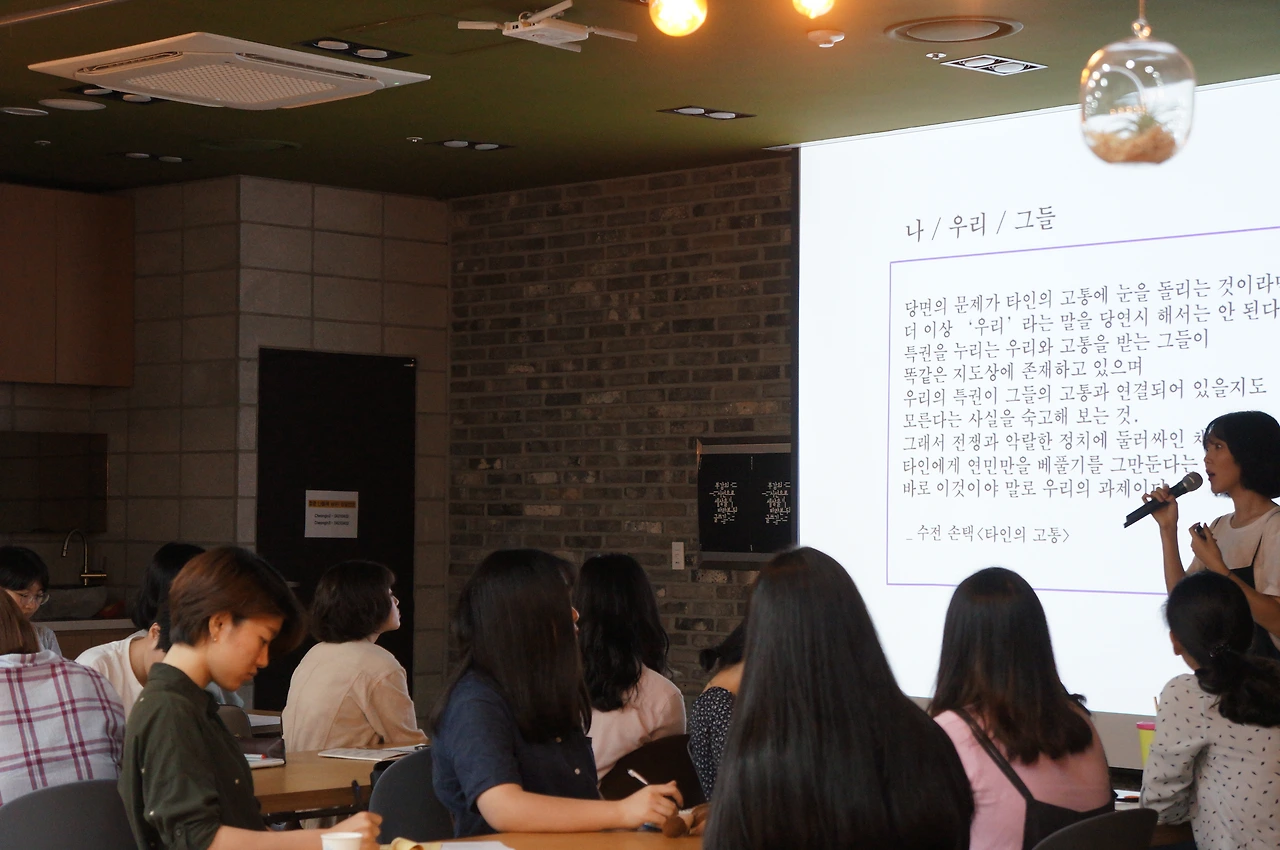 7월 4일, 페미니즘 글쓰기 강좌 [부감의 시선으로 세상을 바라본 뒤 글쓰기] 첫 강좌가 시작되었습니다.
