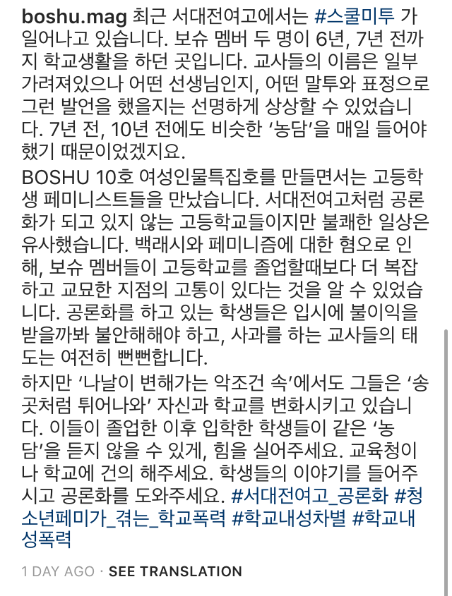 페미니즘 잡지 BOSHU를 학교에 데려가주세요!