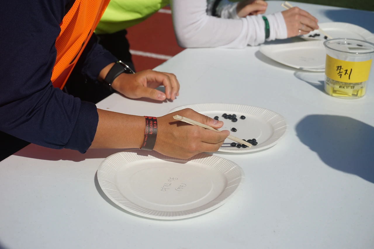 데굴데굴 굴러다니는 콩들을 젓가락으로 집어서 다 옮기면 (20개!) 다음 순서로 넘어갈 수 있죠.