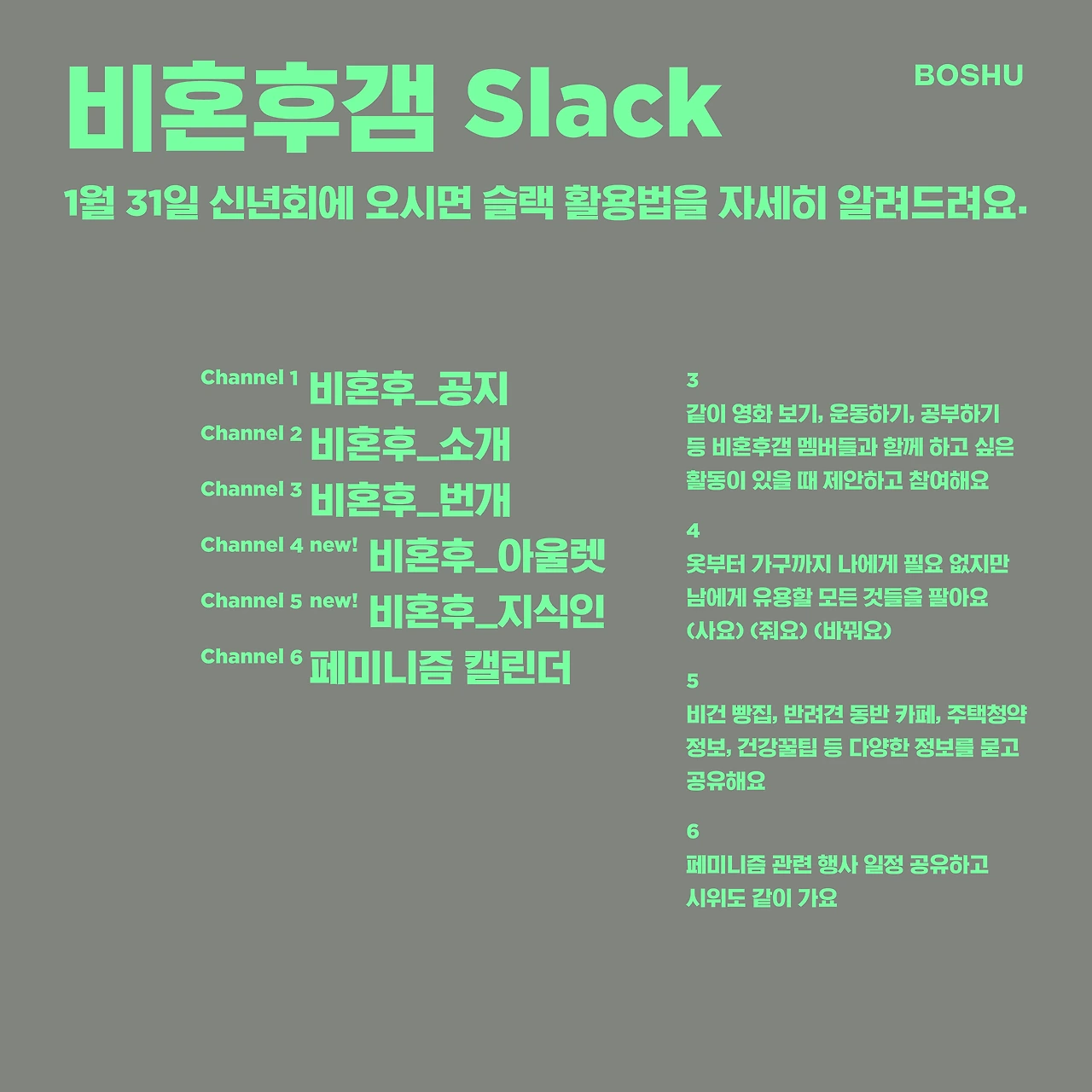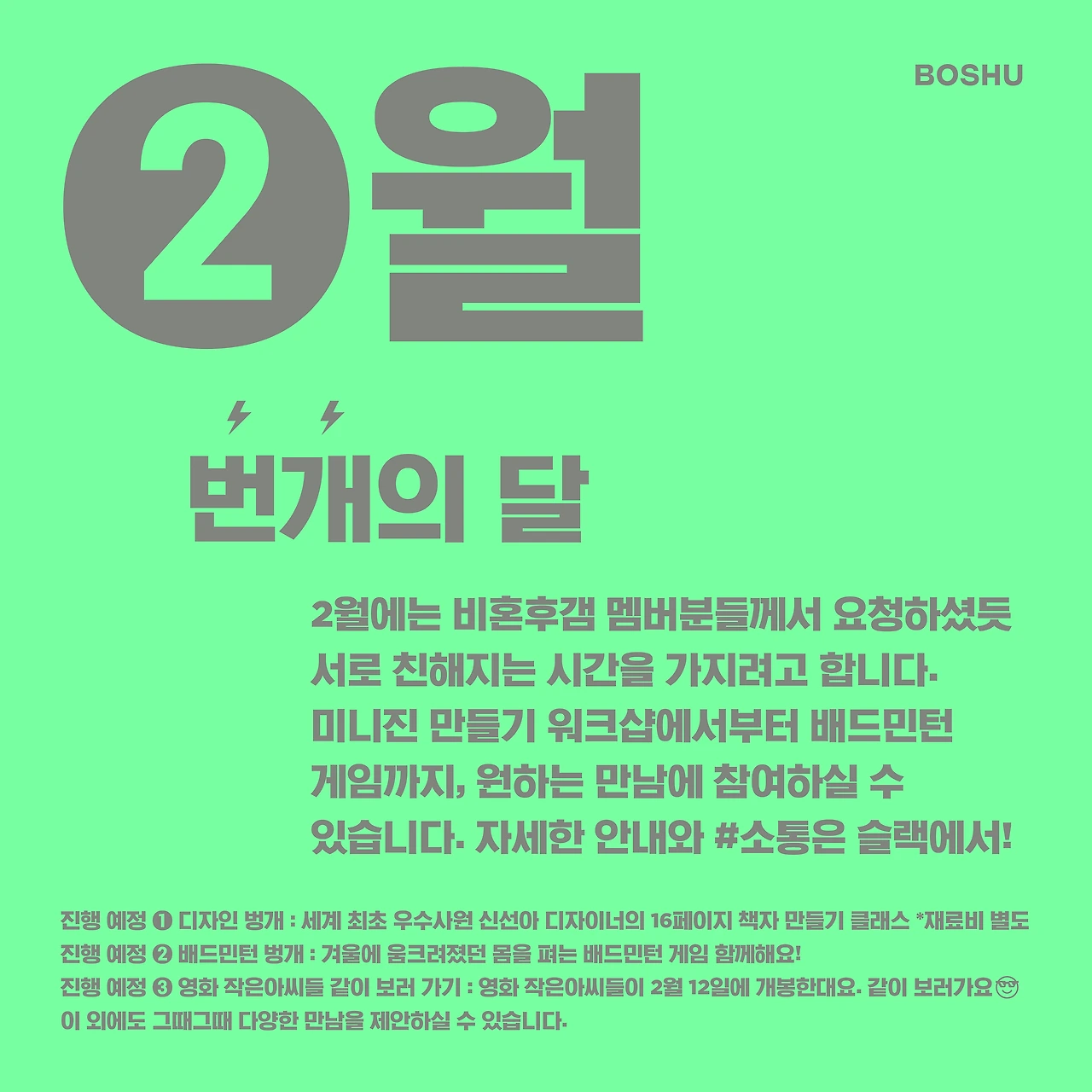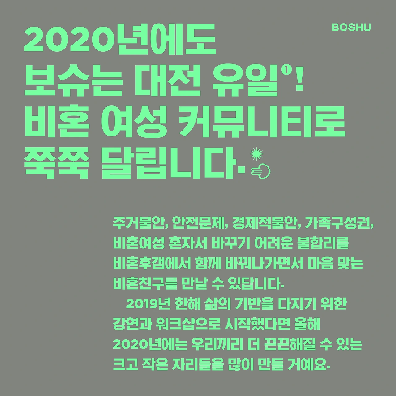 2020년에도 BOSHU는 대전 유일! 비혼 여성 커뮤니티로 쭉쭉 달립니다.