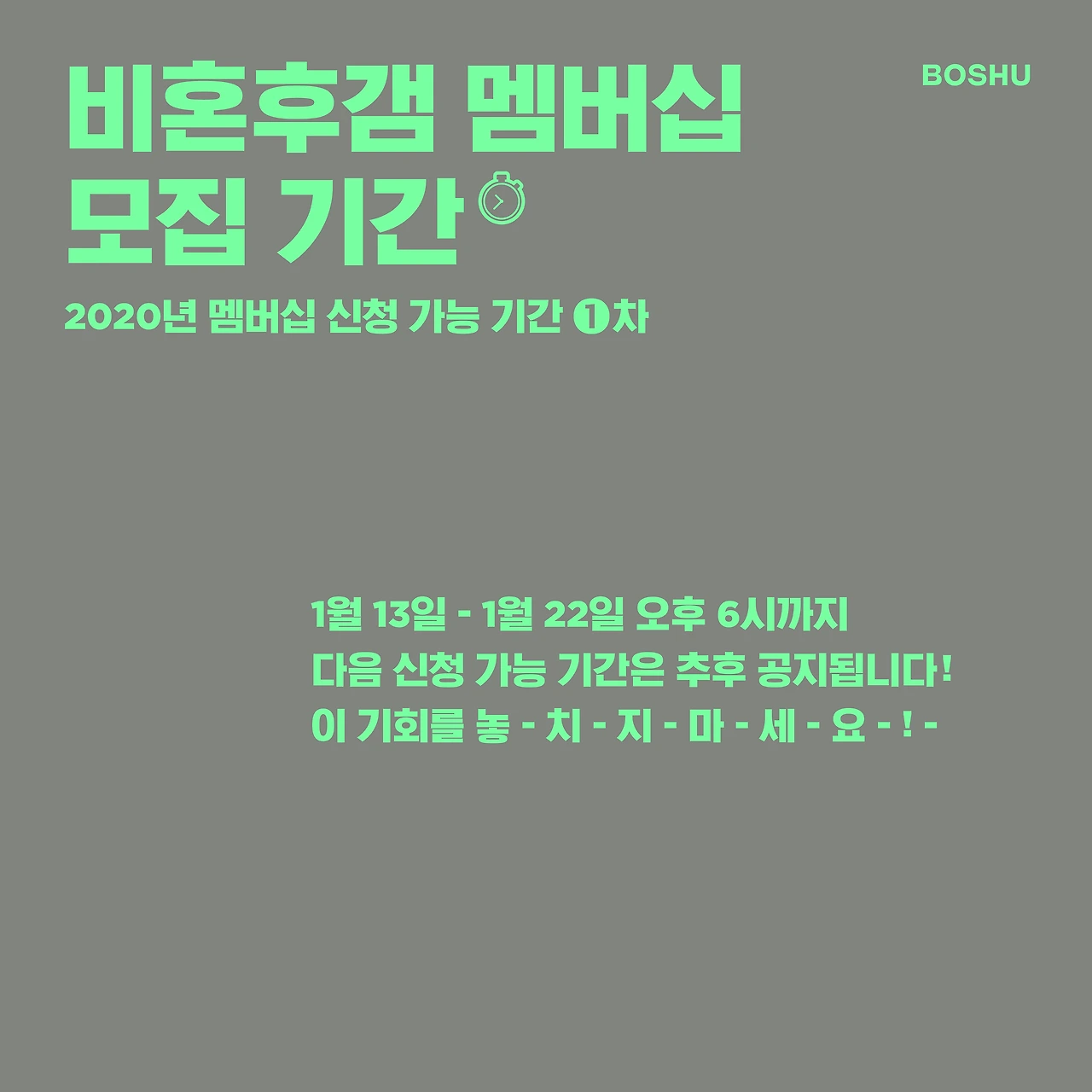 !2020 BOSHU MEMBERSHIP 비혼 후 갬 1차 모집!