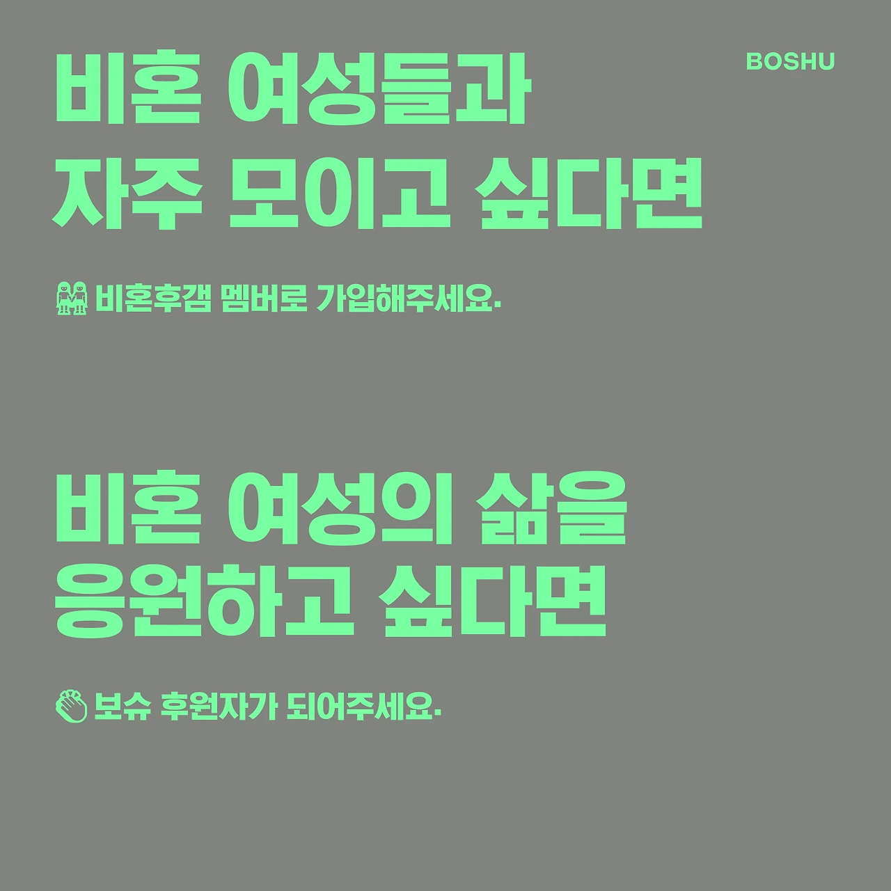 [2]비혼 여성의 삶을 응원하고 싶다면 보슈 후원자가 되어주세요.