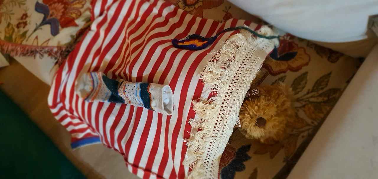크리스마스가 다가올 때쯤 산타의 선물을 기다리는 아이들의 머리맡에 둘 커다란 양말을 만들고 싶다는 생각이 떠올랐다. 영감은 늘 완성된 이미지로 내 머릿속에 떠오른다. 그러나 나는 그걸 현실에 옮기지 못하고 미적거리고 있었다. 다이소에 가면 부직포로된 커다란 양말주머니를 싼값에 살 수 있고, 바느질을 할 시간이 없고, 천도 마땅치 않다. 내가 양말을 직접 만들어야 할 이유는 어디에도 없었다. 그러나 오늘 저녁엔 이상하게 그걸 해야만 할 것 같았다. 남편의 낡은 옷 중에서 크리스마스에 어울릴만한 빨간 줄무늬 티셔츠를 찾아냈다. 재봉을 배우다 지쳐 적성에 안 맞는다며 처박아둔 재봉도구박스에서 보헤미안 스타일의 수술을 찾았다. 여기를 막을까 저기를 막을까 이리저리 돌려보다 결정을 내린다. 선택은 내 손에 달렸다. 그다음부턴 일사천리다. 홈질, 박음질, 공그르기... 알고 있는 모든 기법이 총동원된다. 완벽할 필요가 없으니 온전히 자유로워진다. 수술을 달 때는 양면테이프를 동원한다. 충분히 잘 붙는다. 재봉과 마찬가지로 적성에 안 맞아서 처박아둔 뜨개질꾸러미에서 그래니스퀘어 두 조각을 찾아낸다. 그것도 양면테이프로 붙인다. 아이들 방에 쌓여있는 인형들로 주머니를 채운다. 두 돌 둘째가 들어가도 될 만큼 커다란 주머니가 완성되었다.