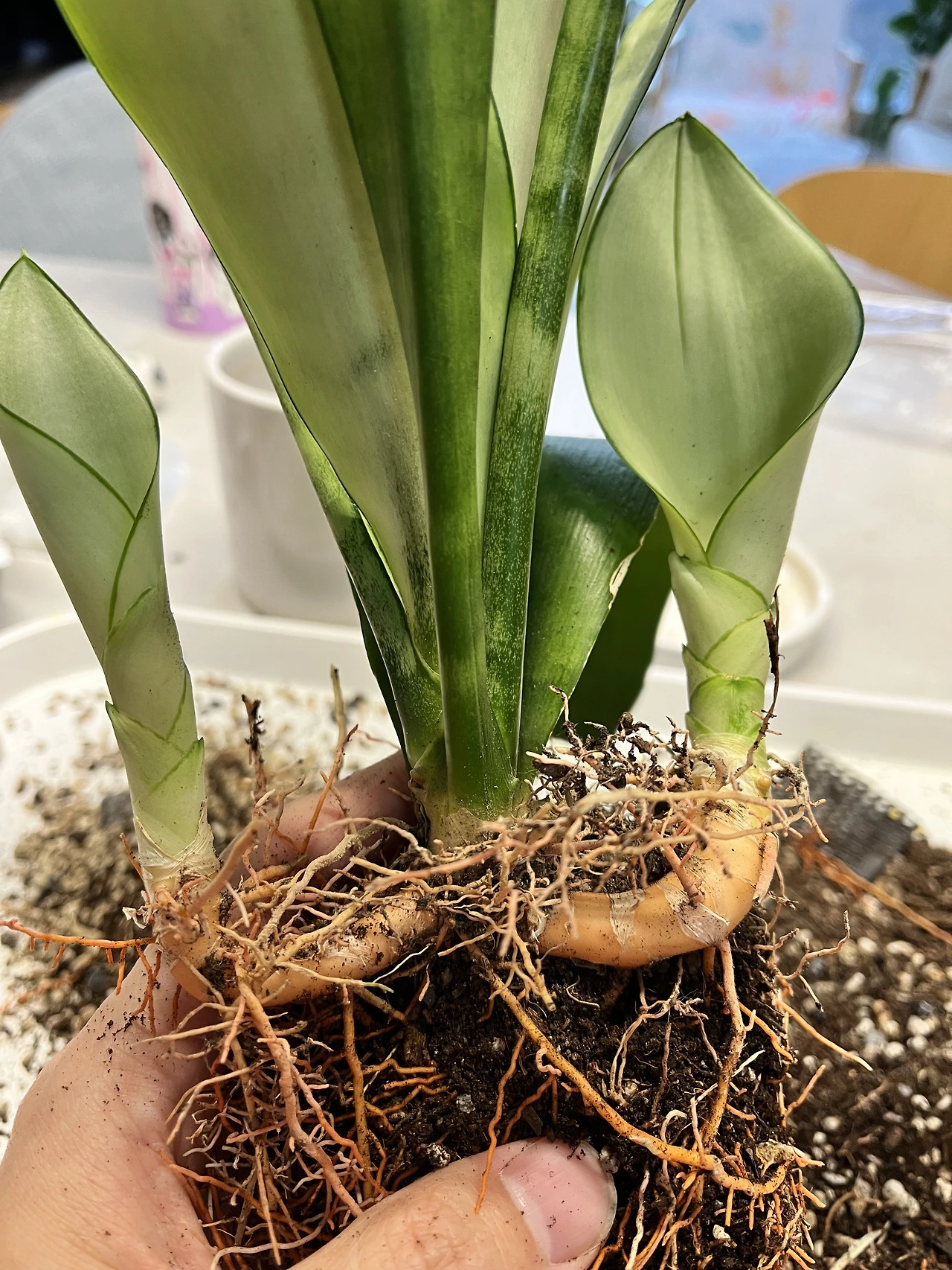 문샤인은 산세베리아 종류의 식물이다. 처음에 새잎이 올라오면 완전 초록빛이 아니라 차분한 회색빛 녹색을 띠는데, 은은한 은빛으로 보이기도 한다. 신비롭다. 나는 이 문샤인을 6년 전쯤 데려와서 회사 책상 위에서 키웠었다. 하지만, 햇빛도 안 드는 열악한 환경에서 볼품없이 위로 길쭉하게만 자랐었다. 그러다가 몇 해 전 집으로 데려와서 분갈이도 해주고 햇빛을 충분히 쬐어주면서 키우기 시작하자, 기다렸다는 듯이 새 잎을 뽑아내며 아주 건강하게 쑥쑥 자라났다. 그리고 언젠가부터 '자구'라는 것이 주변으로 쑥쑥 자라나기 시작했다.