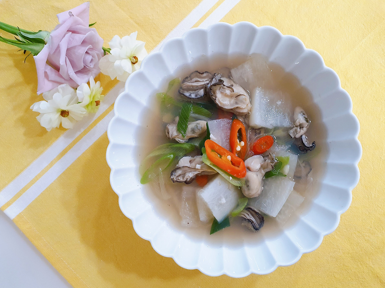 술자리 잦은 연말과 연 초, 아침 해장용으로도 제격인 굴 뭇국을 끓여보자.