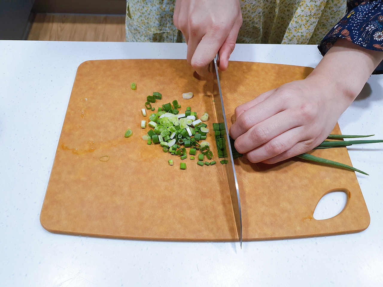 3. 그사이 쪽파 2대는 잘게 쫑쫑 다지고, 마늘도 다져 준비한다.