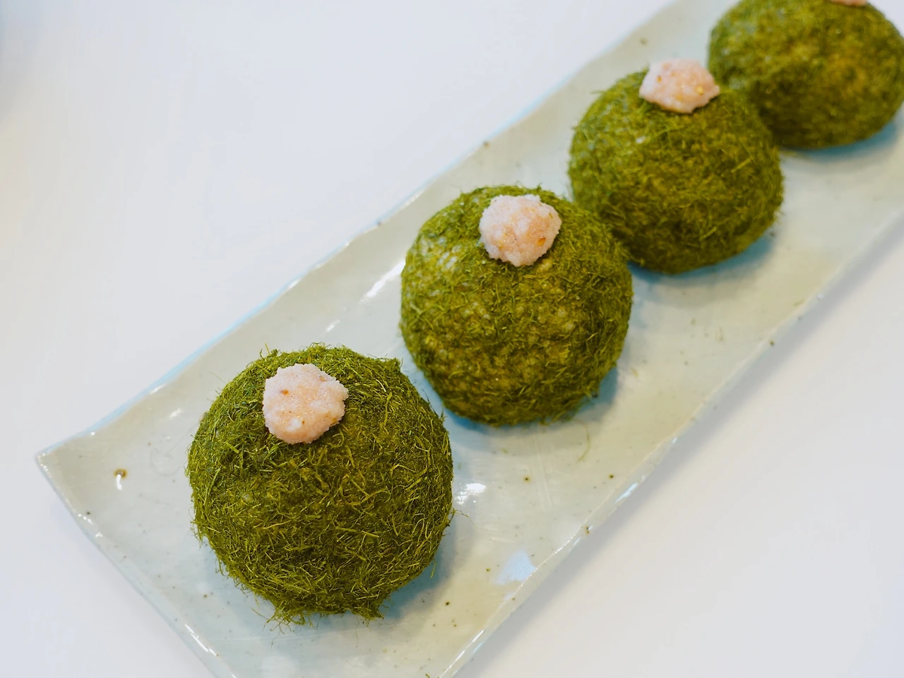 5. 구운 감태를 잘게 찢고, 만들어 둔 주먹밥에 감태 가루를 묻힌다.