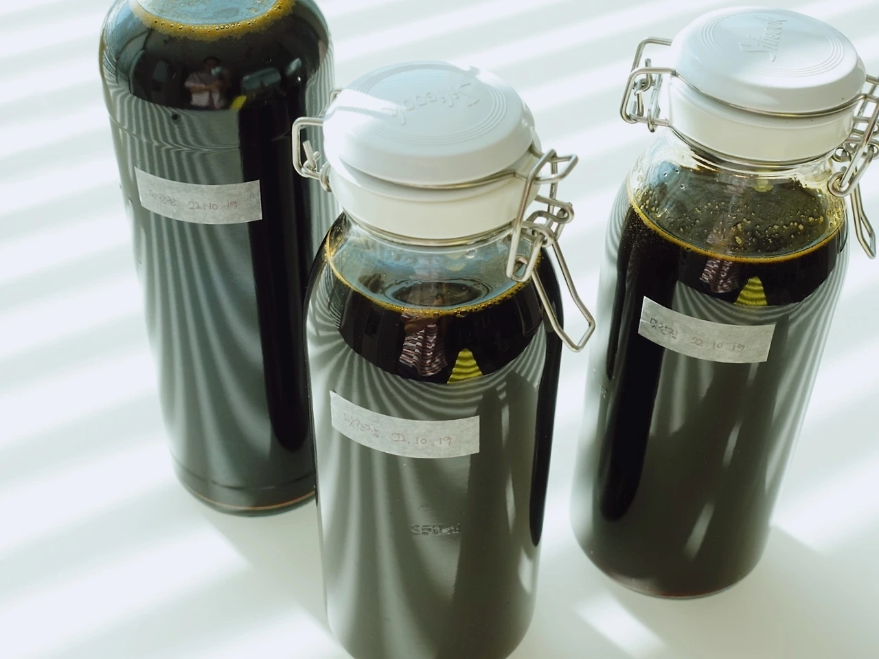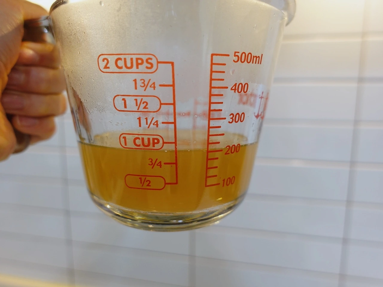 5.24시간 후 레몬과 사과를 체에 거르고, 깨끗하게 소독한 병에 담아 냉장 보관하며 사용한다.