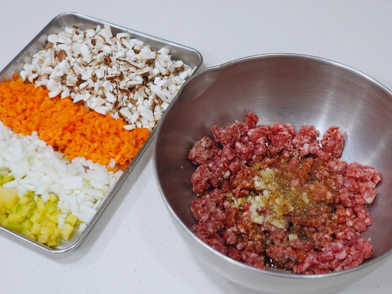 2. 당근, 양파, 애호박, 표고버섯은 잘게 다진다.