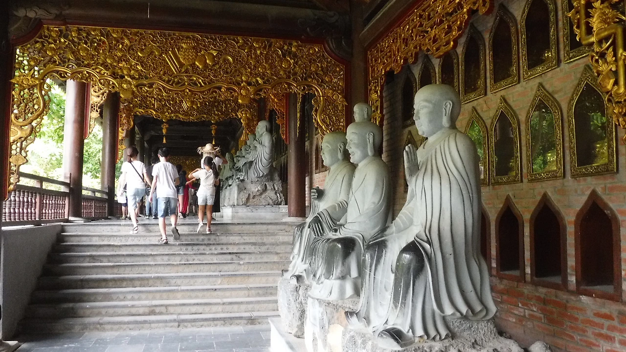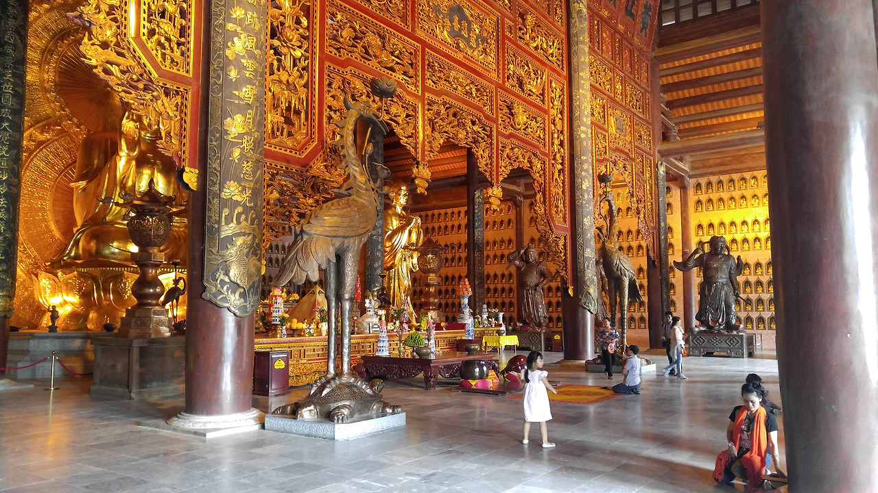 오늘은 '#짱안' 투어 가는 날. 짱안은 '육지의 #하롱베이'라 불리는 곳. 0900 호텔로 픽업 온 투어버스로 출발해서 1000 휴게소에서 잠시 휴식하고 1100 동양 최대 규모 '#바이딘' 사원 도착. 바이딘사원은 베트남 수도인 하노이 '건도 1,000년'을 기념하여 설립된 사원, 무려 두 시간 넘게 사원을 둘러보는데 그 규모에 입이 딱 벌어짐. 하지만 워낙 덥고 습한 날씨라 많이 지침. 들어갈 때와 나올 때 잠깐 전기차를 타는데 이거 안 타고 걸어갔다면 죽었을 듯. 그래도 함께 간 베트남 가이드 분이 워낙에 친절하게 잘 설명해 줌. 베트남 현지 관광객도 있어 가이드는 영어와 베트남 2개 국어로 진행.