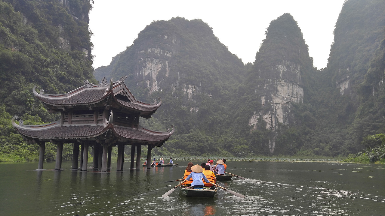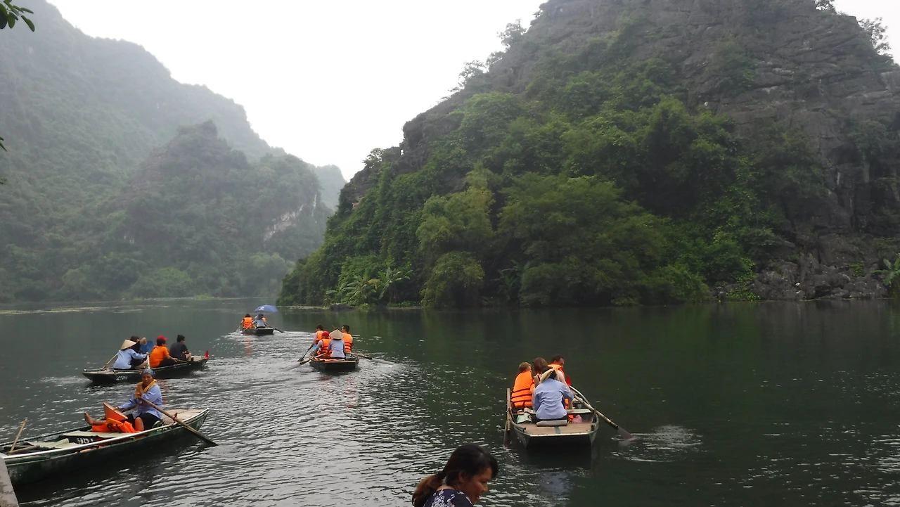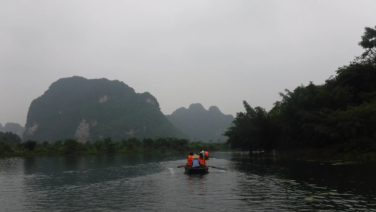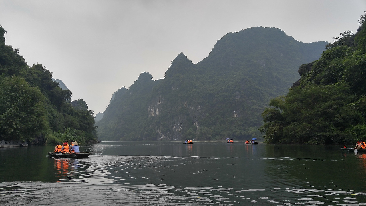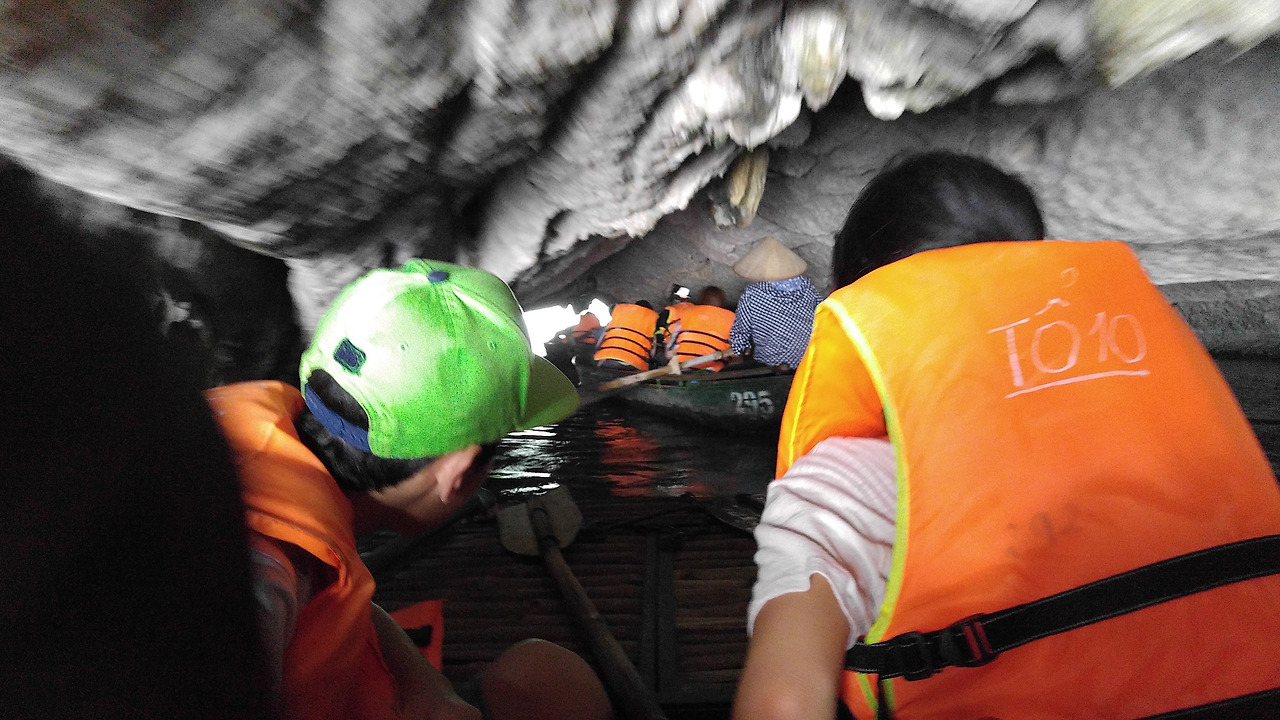 1400 배가 고파서인지 무척이나 맛있게 점심식사. 일종의 베트남식 간이 뷔페 스타일. 밥 다 먹고 1445 짱안 도착해서 본격적인 보트 투어. 2014년 유네스코 세계복합문화유산에 등재된 곳답게 풍광이 기가 막힘. 나이 좀 들어보이는 아주머니가 직접 노를 저어주는 보트로 근 두 시간 가까이 유람. 여분의 노가 보트에 있어 아이들과 돌아가며 잠깐잠깐 저음. 내릴 때 팁(5천원)은 필수.