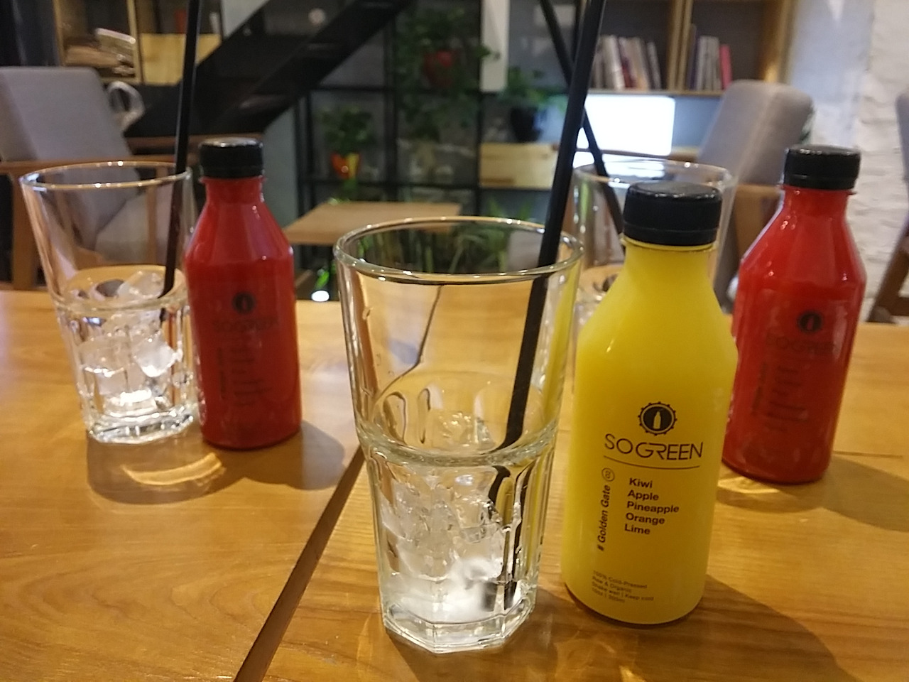 돌아오는 길은 넘 더워서 1400 에어컨 빵빵한 주스가게 '#소그린주스카페' 들어가 생과일주스(네 잔에 만원) 마시며 좀 쉬다 숙소 복귀.