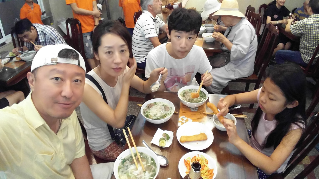 숙소 들어왔다 1130 다시 ‘#흐엉리안’에 분짜 먹으러 감. 큰 아이 선우가 꼭 다시 가고 싶다 노래를 불렀던 맛집. 역시 맛있다. 분짜와 넴, 잘 먹고 나와 ‘#베트남한국병원’ 맞은 편 가게에서 ‘체’와 ‘반미’ 사서 12시반에 숙소 돌아와 체크아웃. 체크아웃 후에도 수영장과 샤워장은 이용할 수 있다고 해서 1300부터 물놀이 하다 1700 수영장에서 나옴.