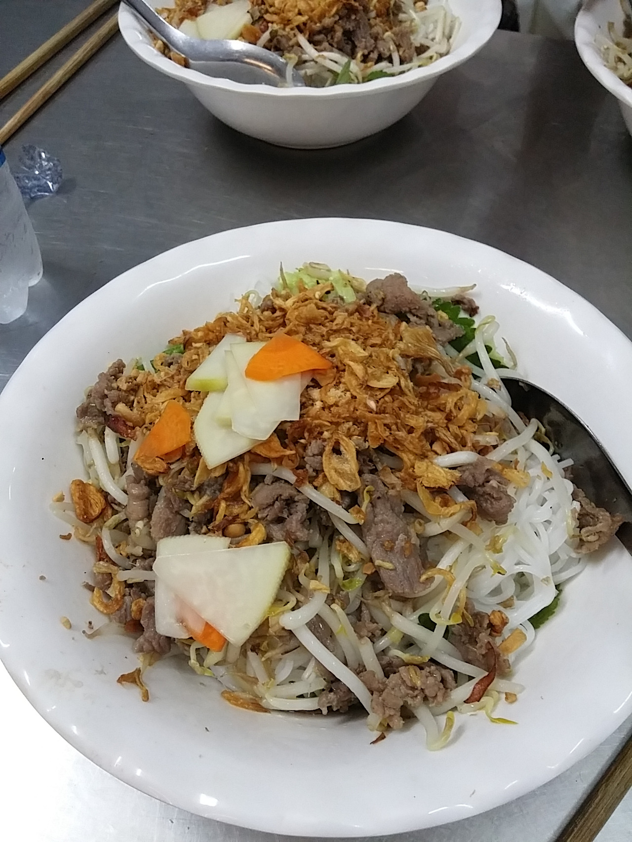 1700 샤워하고 1800 저녁식사 하러 나감. 1845 유명 맛집 '#분보남보'에서 '분보남보'로 저녁식사. 고기가 듬뿍 들어간 달달한 비빔쌀국수. 한 그릇에 3천원인데 양도 많음.