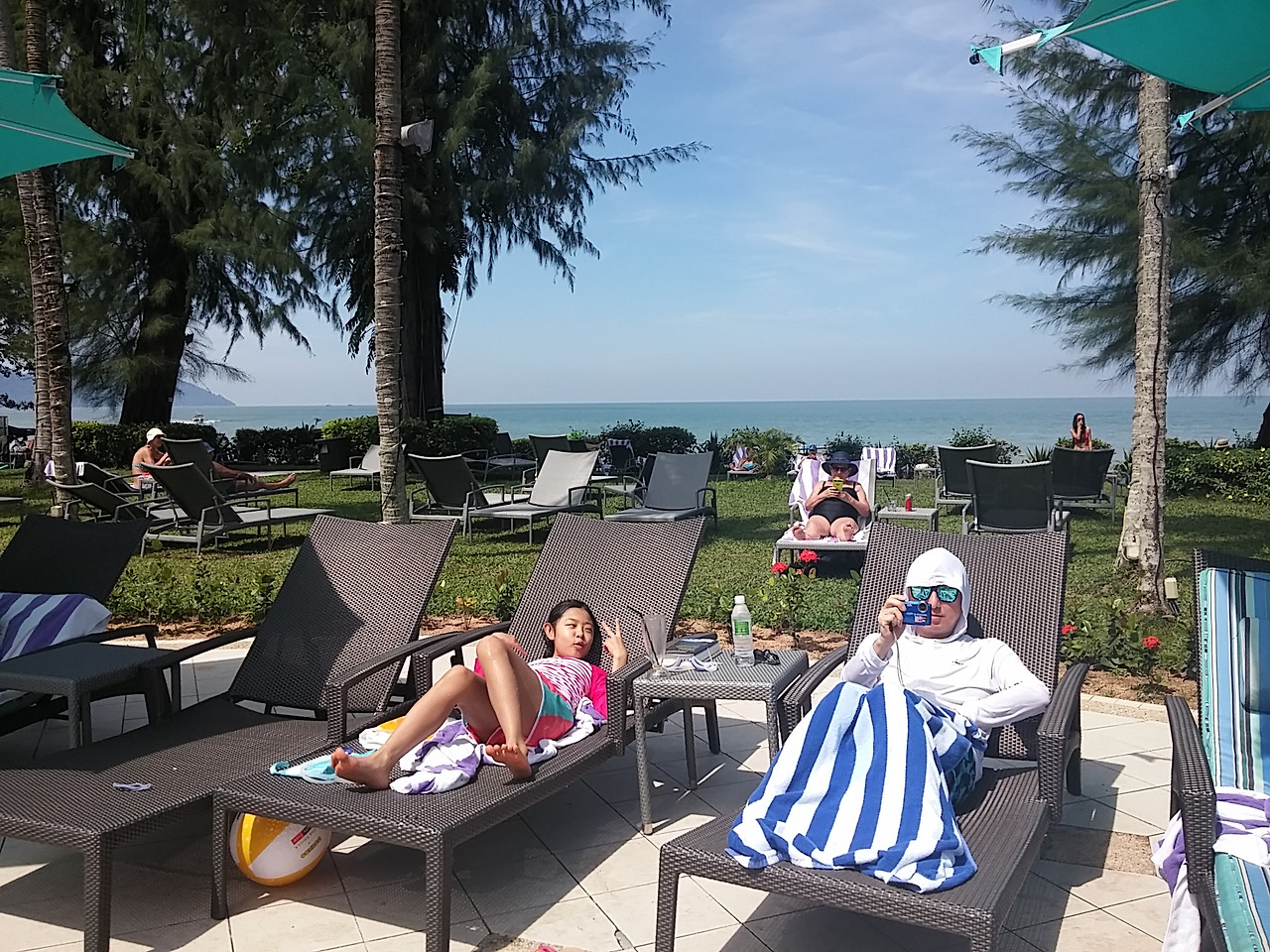 0730 일어나 0830 호텔 뷔페 조식 먹고 산책하고 방으로 컴백. 1030 수영장 내려와 물놀이. 시우는 에너자이저. 지치지도 않음. 풀바에서 스무디와 커피 사먹음.