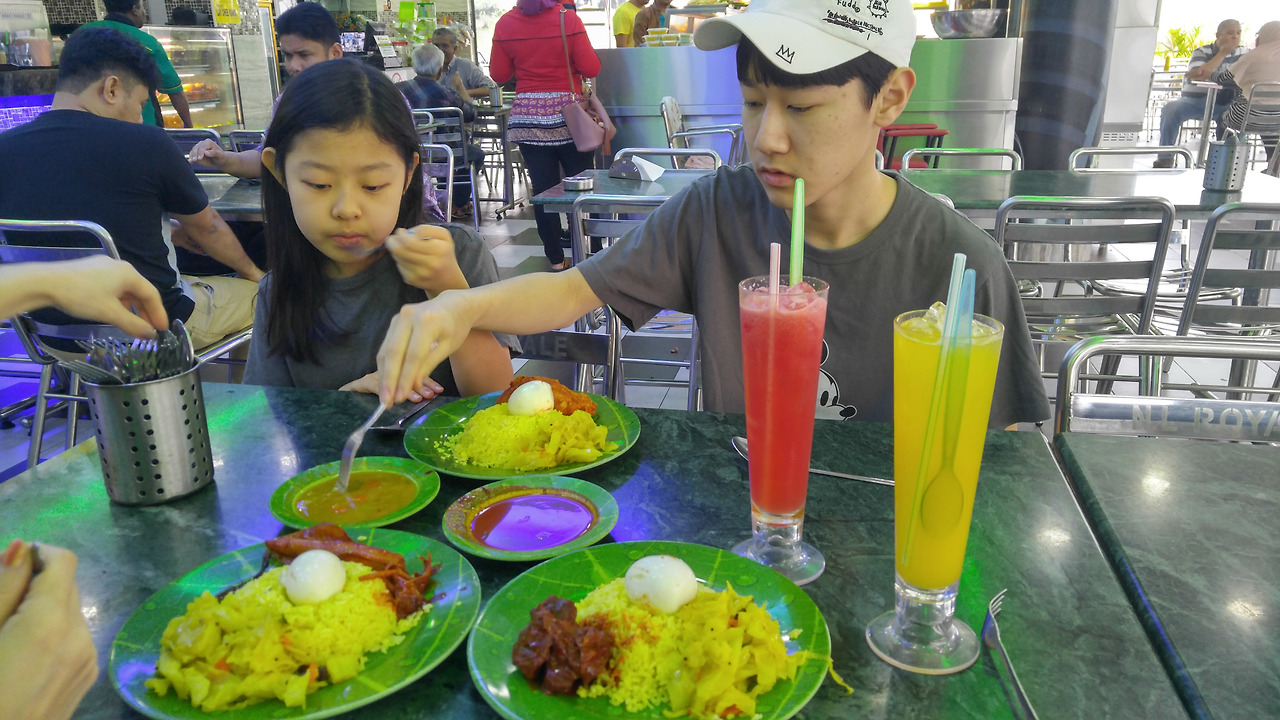 0730 일어나 뒹굴거리다 샤워하고 0930 숙소 인근 식당에서 나시르막과 과일주스로 아침식사. 말레이에서의 첫 식사로 나쁘지 않음.