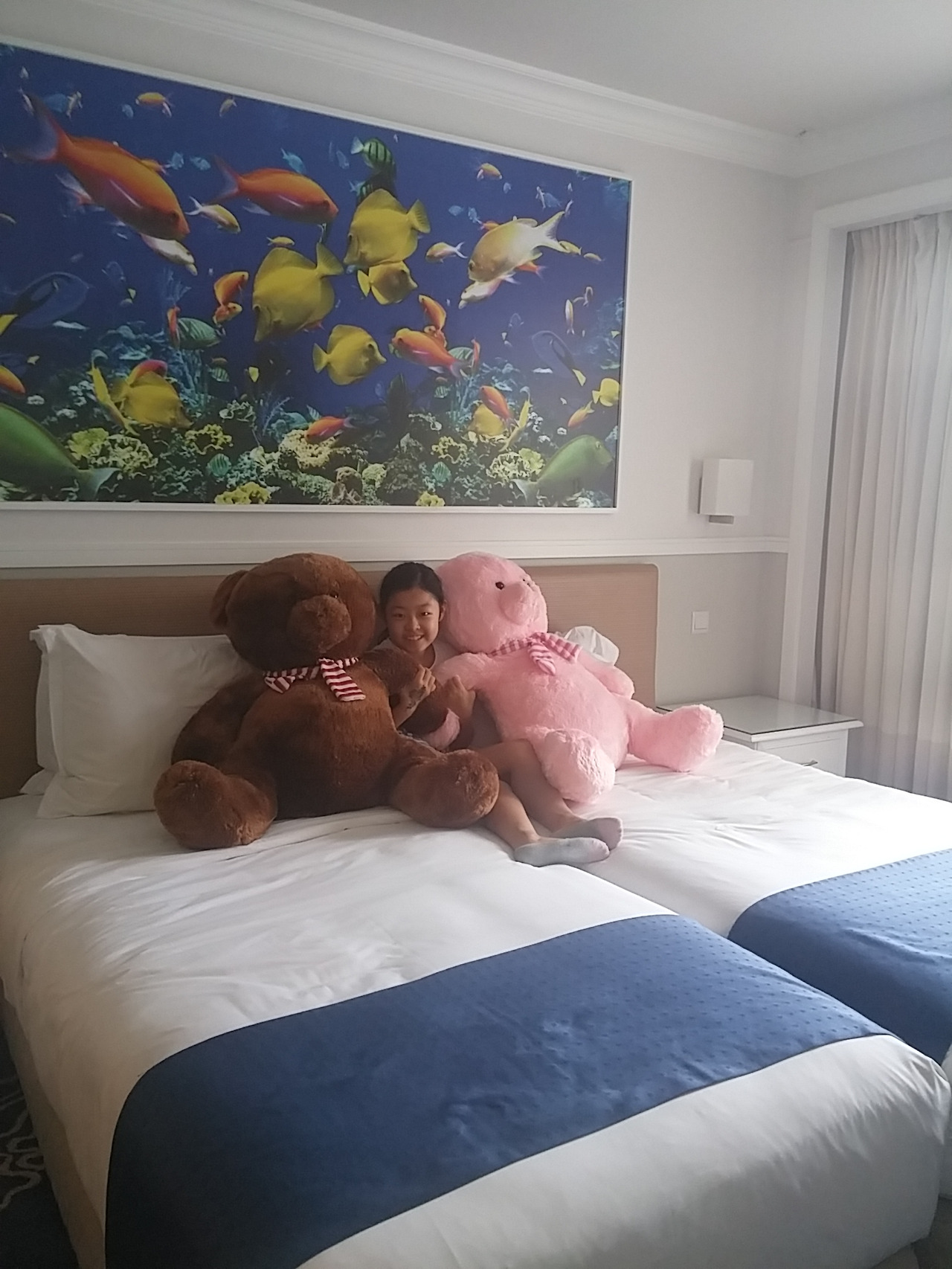 1430 두 번째 숙소 '홀리데이인리조트' 도착. 킹사이즈 더블베드와 싱글베드 두 개가 있는 투 룸. 깔끔하고 좋음. 호텔 내외부와 비치 돌아보고 1700 수영장에서 물놀이. 1830 물놀이 마치고 샤워 후 휴식.