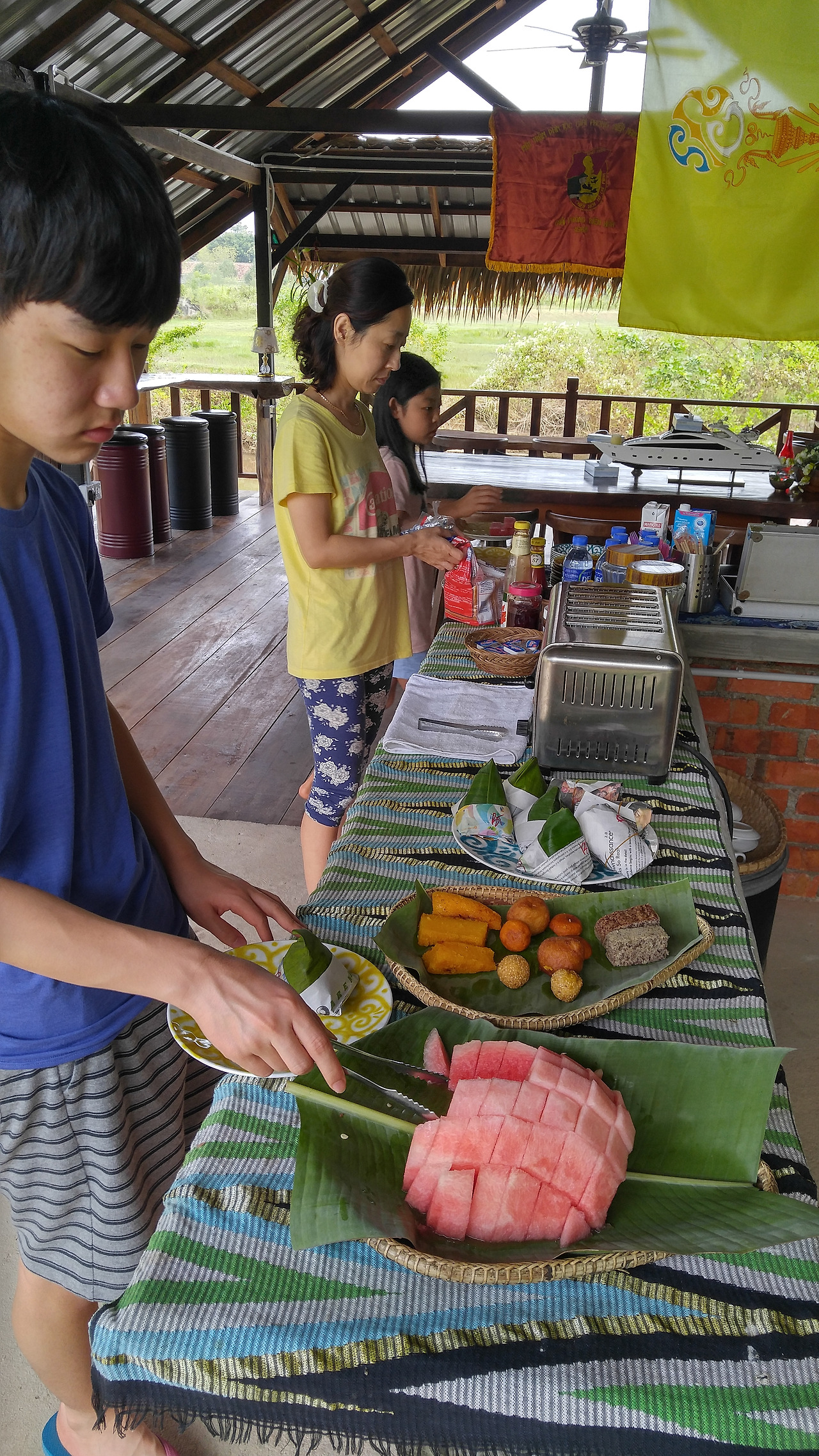 0900 야외식당에서 먹는 리조트 조식. 나시르막과 오믈렛, 빵과 커피, 수박과 바나나로 운치있는 말레이 전통식사.