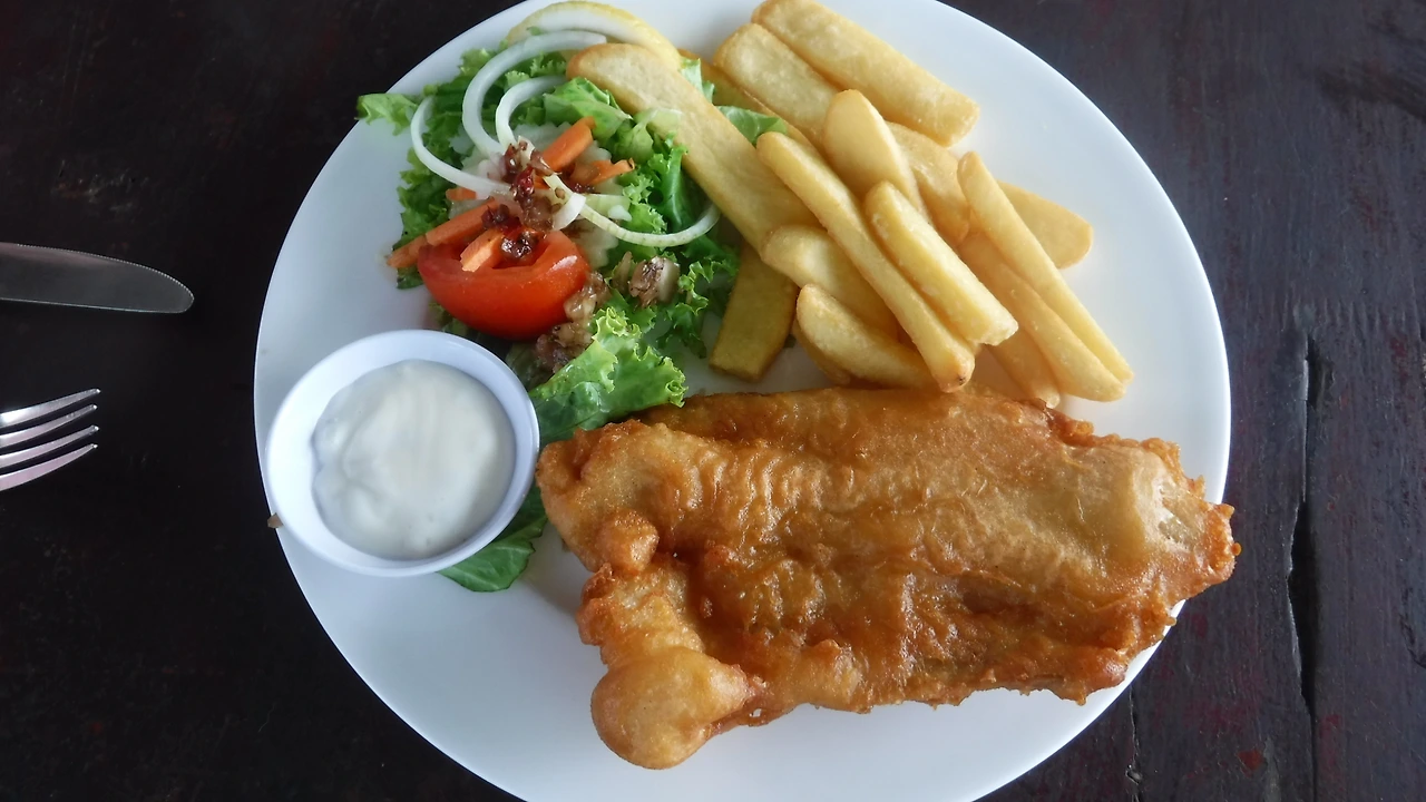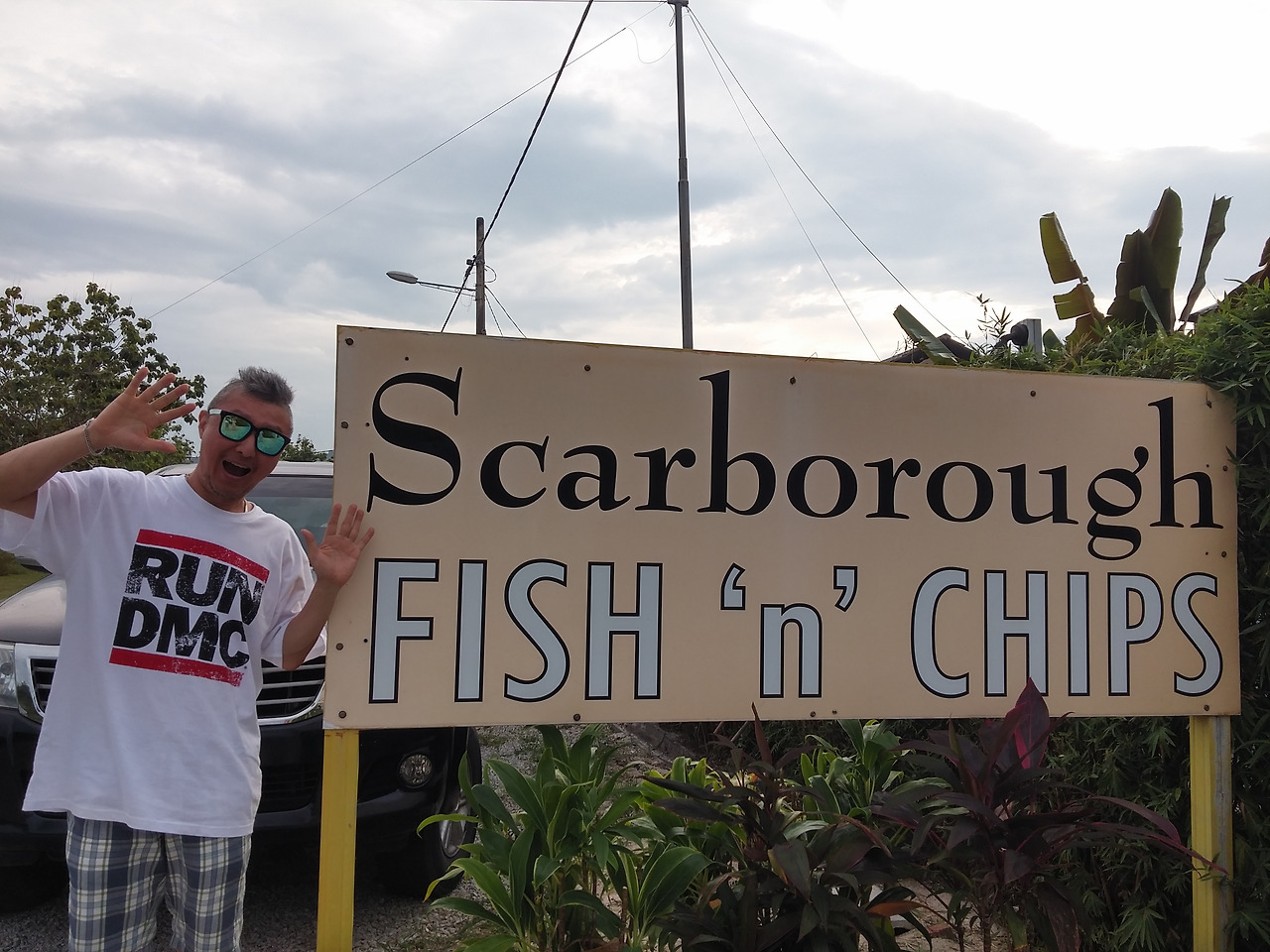 1730 '스카브로 피시앤칩스 (Scarborough Fish and Chips)'에서 시그너쳐 메뉴인 피시앤칩스 하나와 새우튀김. 수박주스, 레몬주스로 간식. 바다가 바로 앞에 보이는 운치있는 식당.