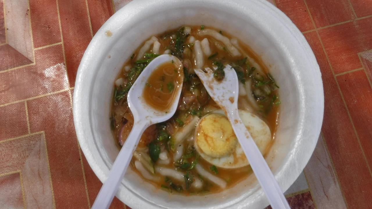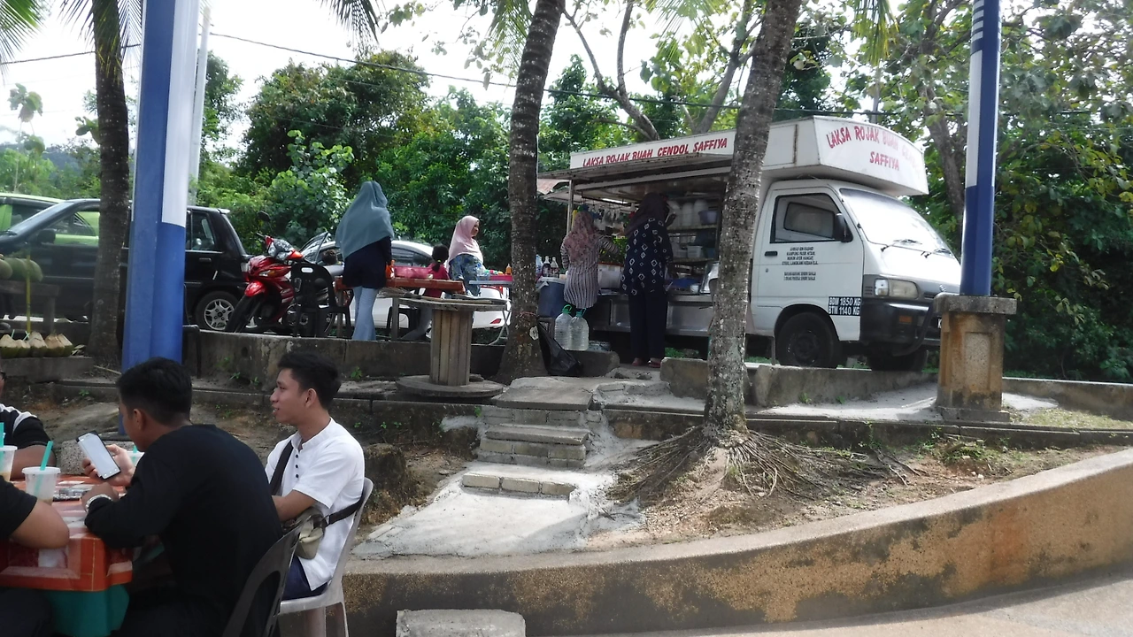 1430 '탄중루 비치' 가는 길, 노변 트럭노점 'Saffiya'에서 락사와 비프국수, 첸돌과 로작 먹음. 드디어 먹어본 음식 '로작'. 일종의 과일샐러드로 매콤한 소스가 이색적인 음식. 음식값이 총 20링깃으로 가성비 최고.