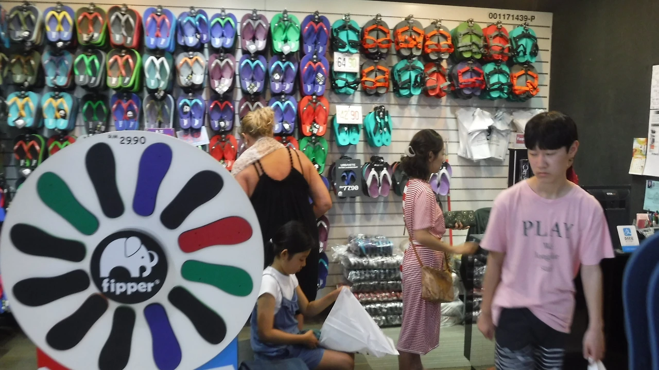 잠깐 쉬다 1030 차 타고 나와 '체낭비치' 둘러보고 사진도 찍고 시우 'Fipper' 쪼리 구입.