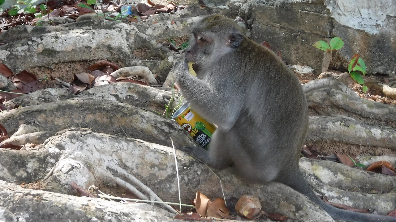 1300 '텡고락 비치'에서 물놀이 한 시간. 물도 깊지 않고 파도도 없어 아이들과 놀기에 좋음. 하지만 일체의 부대시설이 없다는 게 함정. 관광객들은 잘 모르는, 현지인들이 피크닉 온다는 비치. 그런데, 여기서 원숭이한테 프링글스 한 통 순식간에 강탈 당함. 물놀이를 하려 옷가지와 함께 짐을 풀어 둔 곳에 삐죽히 튀어나와 있던 노란 색 프링글스 통을 발견한 원숭이 한 마리가 순식간에 통을 채 내달림. 나도 본능적으로 짐 쪽으로 달려갔지만 간발의 차로 뺏김. 겁 없는 원숭이, 나쁜 놈.ㅡ.,ㅡ