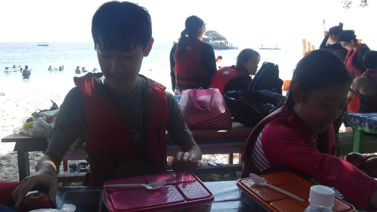 0645 일어나 KFC '아삼보울' 사와서 아침 먹고 0800 어제 예약해 둔 투어버스 탑승. '쿠아제티' 가서 1000 배 탑승. 쾌속선으로 한 시간 달려가서 작은 배로 갈아타서 '파야 섬' 도착. 물도 따뜻하고 물고기도 사람을 무서워하지 않는 스노클링의 천국. 1230 나눠준 도시락 박스(밥, 치킨, 빵, 샐러드)로 점심식사. 잠시 낮잠 한 숨 자고 다시 스노클링. 아기상어도 있다는데 나만 못 보고 울 가족 다들 봄.ㅡ.ㅡ;;