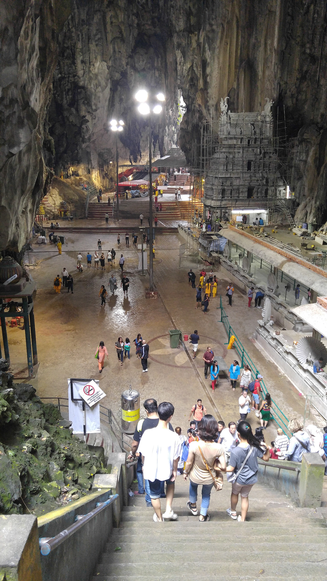 1038 바투동굴행 기차. 현지 전철 타보자는 생각에 나섰으나 그랩과 금액 차이 별로 없고 시간도 훨씬 많이 걸림. 1100 좀 넘어 '바투 케이브'역에 내려 바투동굴과 사원 둘러봄. 272가지 인간의 죄를 상징하는 272계단을 걸어 올라가면 어마어마한 규모의 동굴과 그 안에 있는 힌두교 사원을 보게 됨. 원숭이와 비둘기가 워낙 많아 한국 사람들의 호불호가 나뉠 듯. 하지만 석회질의 천연동굴 자체가 자연의 신비. 가 볼 만한 가치 있음.