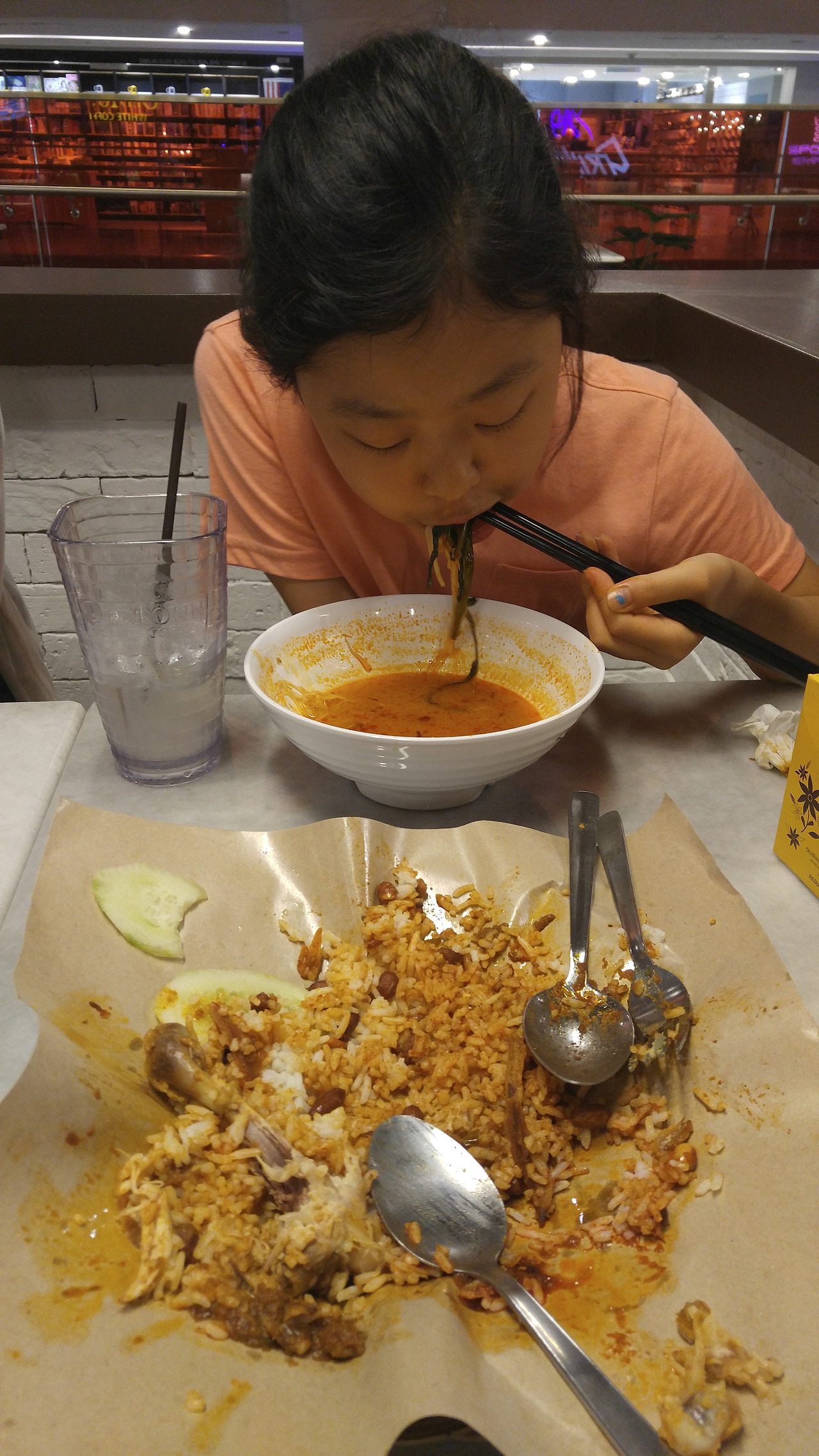 0800 일어나 어제 사 둔 식빵 구워 카야잼 발라 간단하게 아침식사. 잭프룻에 커피까지 더해지니 조식으로 굿. 잭프룻은 먹을 수록 맛있음. 중독성 있음. 오늘은 빈딧불이 현지 투어 신청해 둔 날이라 오전 내내 푹 쉬다 1200 '푸트라몰' 가서 커리미와 치킨라이스로 중식. 투어버스 늦을세라 막 달려와 숙소 로비에서 1320 투어버스 탑승.