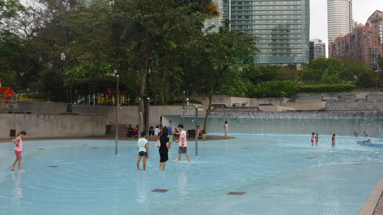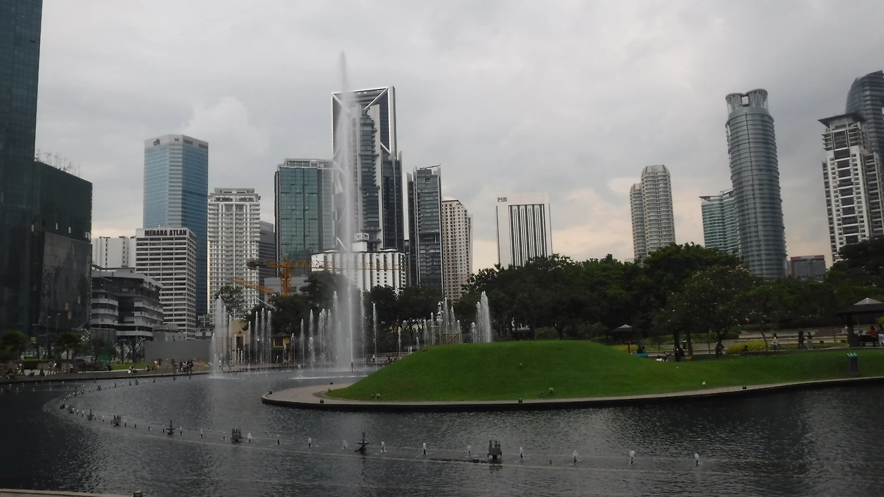 1600에 나와 걸어서 1630 'KLCC 파크' 산책. 시내 한 가운데 있는 녹색공원으로 호수를 따라 한 바퀴 것는 것 자체가 힐링. 다행히 날씨가 다소 흐려 그다지 덥지 않아 다행. 아이들이 가볍게 놀 수 있는 얕은 물놀이 공간도 있음.