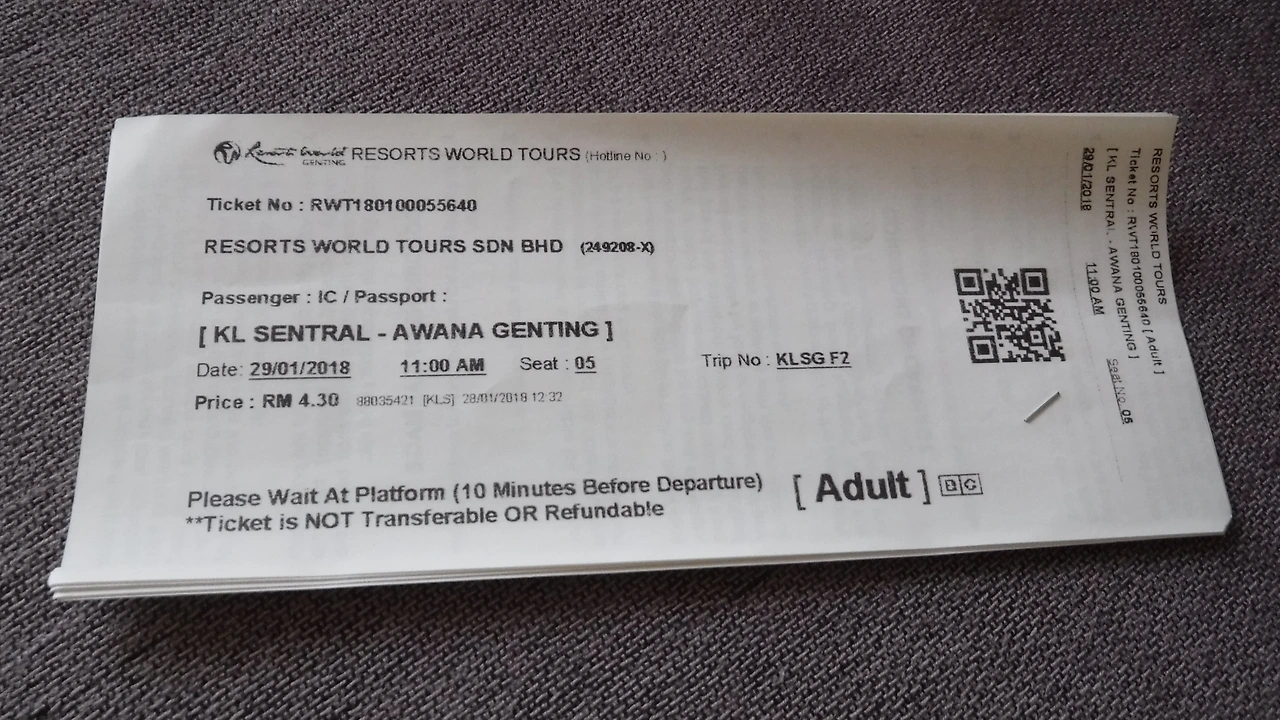 0900 호텔 조식. 충분히 쉬고 1200 그랩 타고 'KL센트럴' 가서 내일 가 볼 '겐팅 하일랜드' 왕복 티켓 예매. 11시 출발에 5시 돌아오는 고속버스 편.