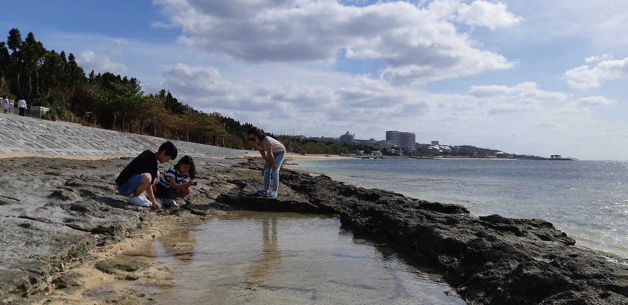 가족들은 어제 오키나와로 출발. 다른 일정 때문에 나만 하루 늦은 오늘 오키나와로. 1230 ‘나하공항’ 내려 모노레일 타고 ‘류보백화점’ 가서 먼저 와있던 가족과 재회. 가족들이 어제 묵은, ‘국제거리’에 있는 호텔 가서 짐 찾음. 다시 모노레일 타고 ‘오모로마치역’에 내려 1500 t갤러리아 2층 ‘OTS렌트카’ 도착. 토요타 코롤라 빌림. 나흘간 15만원이 채 안 되는 금액. 하이브리드차에 15,000킬로도 안 달린 거의 새 차.