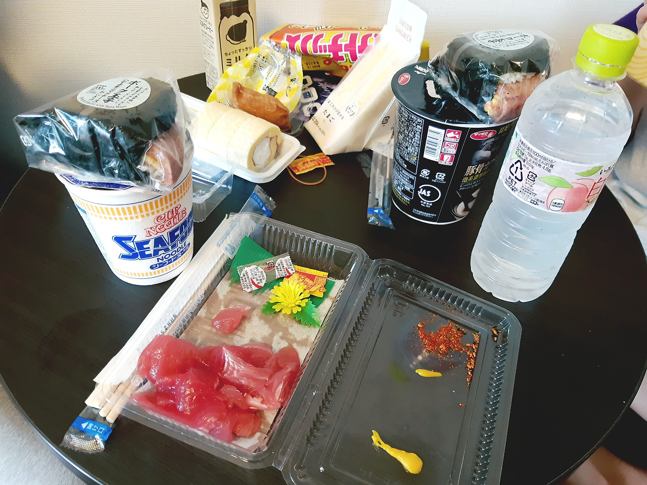 0700 일어나서 인터넷 서핑. 인근 편의점 가서 아침식사 거리 구입. 역시 일본은 편의점 천국. 숙소에서 간략한 아침식사.