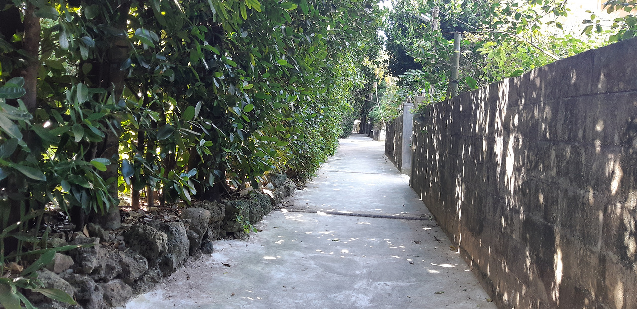 1340 ‘비세마을 후쿠기가로수길’. 천여 그루의 방풍림. 어떻게 나무들이 이렇게 자라 동네 담벼락 역할을 할까 신기함. 나뭇길 사이를 걸어가는 운치가 짱. 산책하기 딱 좋은 힐링코스.