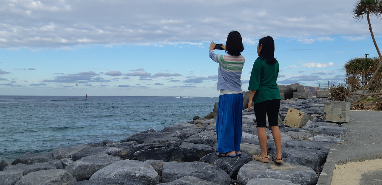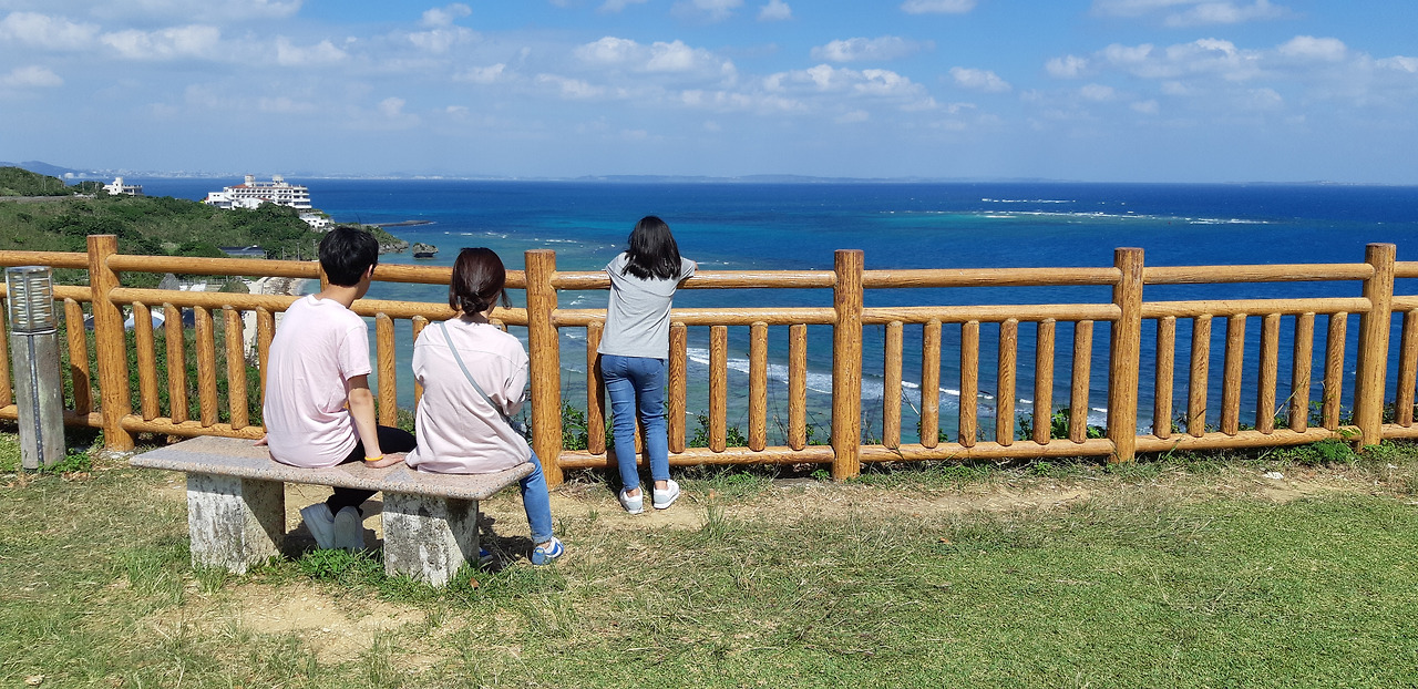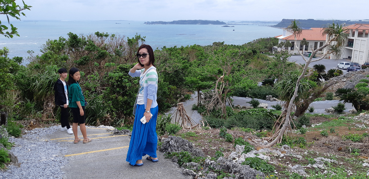 1030 이온몰 장보기. 차 타고 ‘해중도로’ 드라이브. 경치 굿굿. 1230 ‘누치마스 소금공장’과 ‘해피클리프’ 둘러봄. 절경. 바람 엄청 붐.