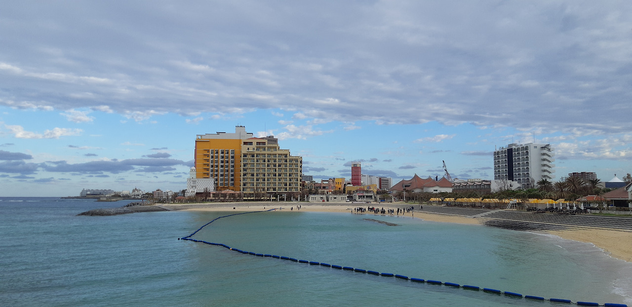 숙소 돌아가다 1620 ‘미치노 에키쿄다 휴게소’ 잠깐 들러 오징어튀김, 해초튀김 먹으며 휴식 1800 아메리칸빌리지 ‘선셋비치’ 바로 옆 '베셀호텔' 체킨