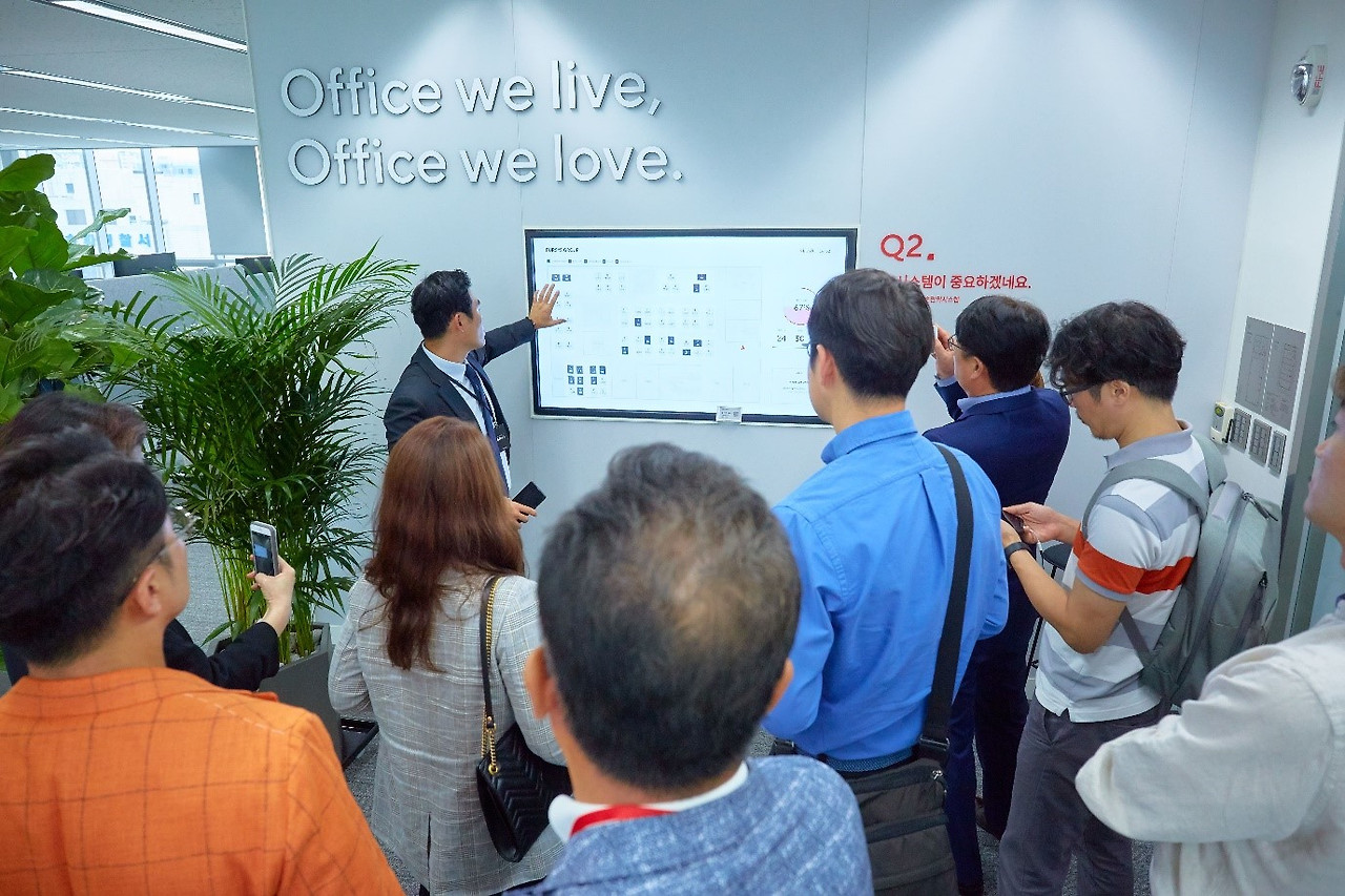 시작은 문제점 분석부터였다. 타사 평균 대비 과도한 개인공간이 비효율적이란 분석. 공용 공간의 부족은 당연한 일이었다. 비즈니스 특성을 고려하지 않은 레이아웃이나 업무 집중을 몰입하는 공간 배치도 문제로 드러났다. 문제가 제대로 정의되니 해답은 심플했다. 먼저 개인공간을 줄였다. 특히 본부장급 이상의 개인공간을 축소함으로써 수평문화를 만드는 데 신경을 썼다. 대신 소통이나 휴식을 위한 공용공간을 대폭 늘였다. 모빌리티 워킹공간도 함께 늘였다. 직군과 업무 특성에 따라 업무공간도 달리 가져갔다. 이런 변화의 과정을 일방적으로 진행하지 않았다. 직원들의 참여와 피드백을 통해 함께 만들었다. 김중 팀장이 보여준 달라진 사무실 모습은 놀라웠다. 스마트오피스로의 변화였다. 직원들의 만족도 역시 올라갔다. 결과는 신뢰로 이어졌다. 유연함이라는 가치를 녹여낸 사무환경 변화는 결국 고성과로, 신뢰로 이어졌다. 공간이 달라지니 사람이 달라진다.