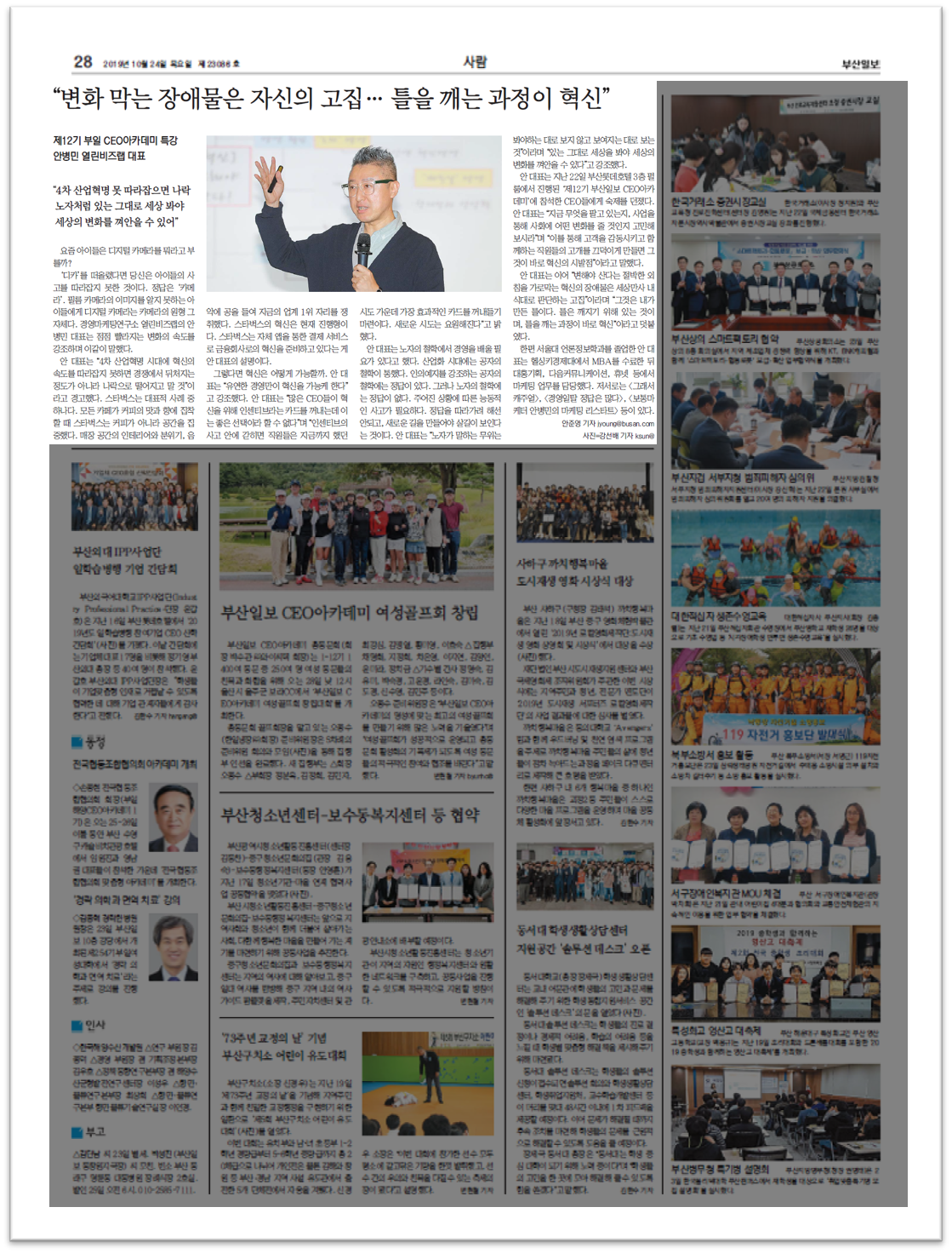 부산일보 2019년 10월 24일자 28면에 실린 <부일CEO아카데미> 스케치 기사입니다.