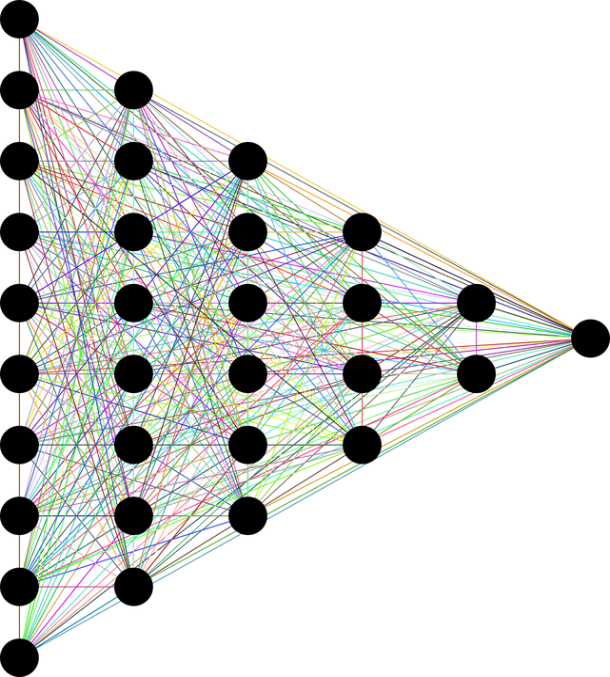 07. 인공신경망 기술은 인간의 뇌 혹은 동물의 뇌에 있는 신경세포들이 연결돼서 생겨나는 인지적 행동의 메커니즘을 모방한 기술이다. 실제 사람의 뇌 속 뉴런들이 연결되어 있는 것처럼 인공 뉴런들도 복잡하게 연결되어 있다. 수학적 계산상으로는 곱셉으로 연결된다. 왼쪽 원에서 오른쪽 원으로 넘어갈 때의 직선이 곱셈과 관련한 가중치다. 이게 파라미터다. 입력값에 의한 모든 계산을 마친 출력치가 그런 과정을 거쳐 나오는 거다. 전제는 빅데이터다. 요컨대 많은 데이터를 넣어주면 인공지능은 자체적인 알고리즘을 통해 입력에 대한 출력을 수행한다. 왜 그런 값이 출력되었는지는 모른다. 블랙박스 모델이라고 부르는 이유다. 돌아보면 우리 인간도 왜 그런 판단과 결정을 내렸는지 모를 때가 많다.