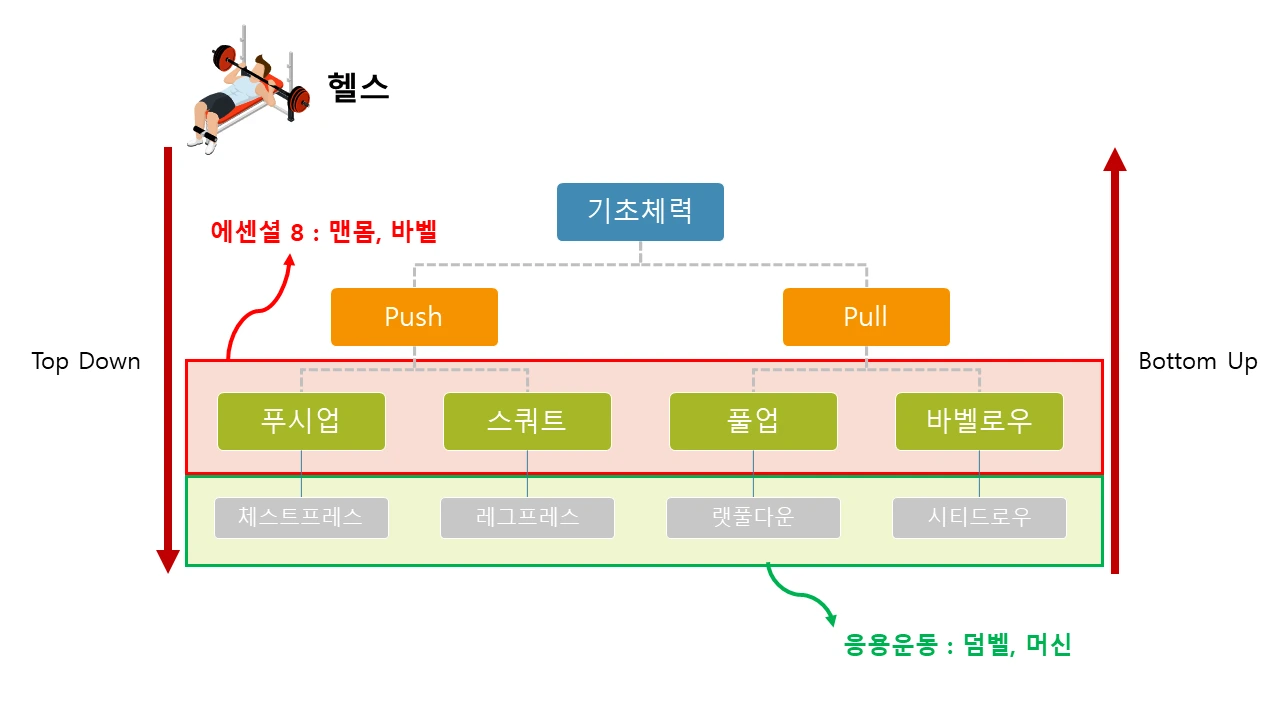 탑 다운 : 큰 틀에서부터 세부적으로 구체화해나가는 방식