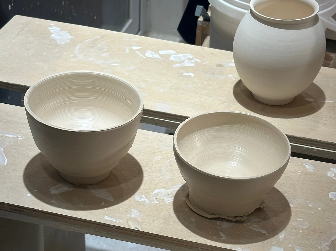 물레를 돌리고, 형태를 깎고, 다듬는 동안에는 머릿속이 조용해진다. 아무 생각도 들지 않고, 그저 손끝의 감각에만 집중하게 된다. 그렇게 몰입하고 있으면, 어느새 2시간 수업이 지나 있다. 체감으로는 겨우 한 시간이 조금 넘은 정도다. 이렇게 시간이 빨리 흘러간다는 건 그만큼 이 순간에 집중하고 있다는 증거일 것이다.