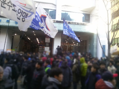 파업 시작 17일째였다. 해당 기사를 검색하면 수많은 카메라 틈에서 노조원의 손을 잡고, 15도 정도 틀어져 얼굴의 어색한 사진기사가 나온다. 파업 상황에서 여유는 기대할 수 없었을 것이다. 방문 소식을 들은 노조원들은 손팻말을 만들고 찾아와 "수서발 KTX 법인 설립은 민영화로 가는 수순인 만큼 당장 철회해야 한다"며 항의 시위를 벌였다.