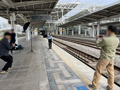 새로 도입한 KTX-청룡 주제의 영상이었으나 동일한 열차는 운행하고 있어, 비슷한 구조의 KTX-이음 객실에서 표정과 포즈만 살려서 촬영했다. 숏츠를 함께 기획한 동료 김선엽 대리도 같이 담았다.